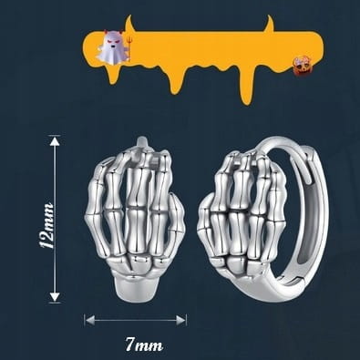 Fraise kolczyki srebrne S925 łapa kościotrup szkielet kości