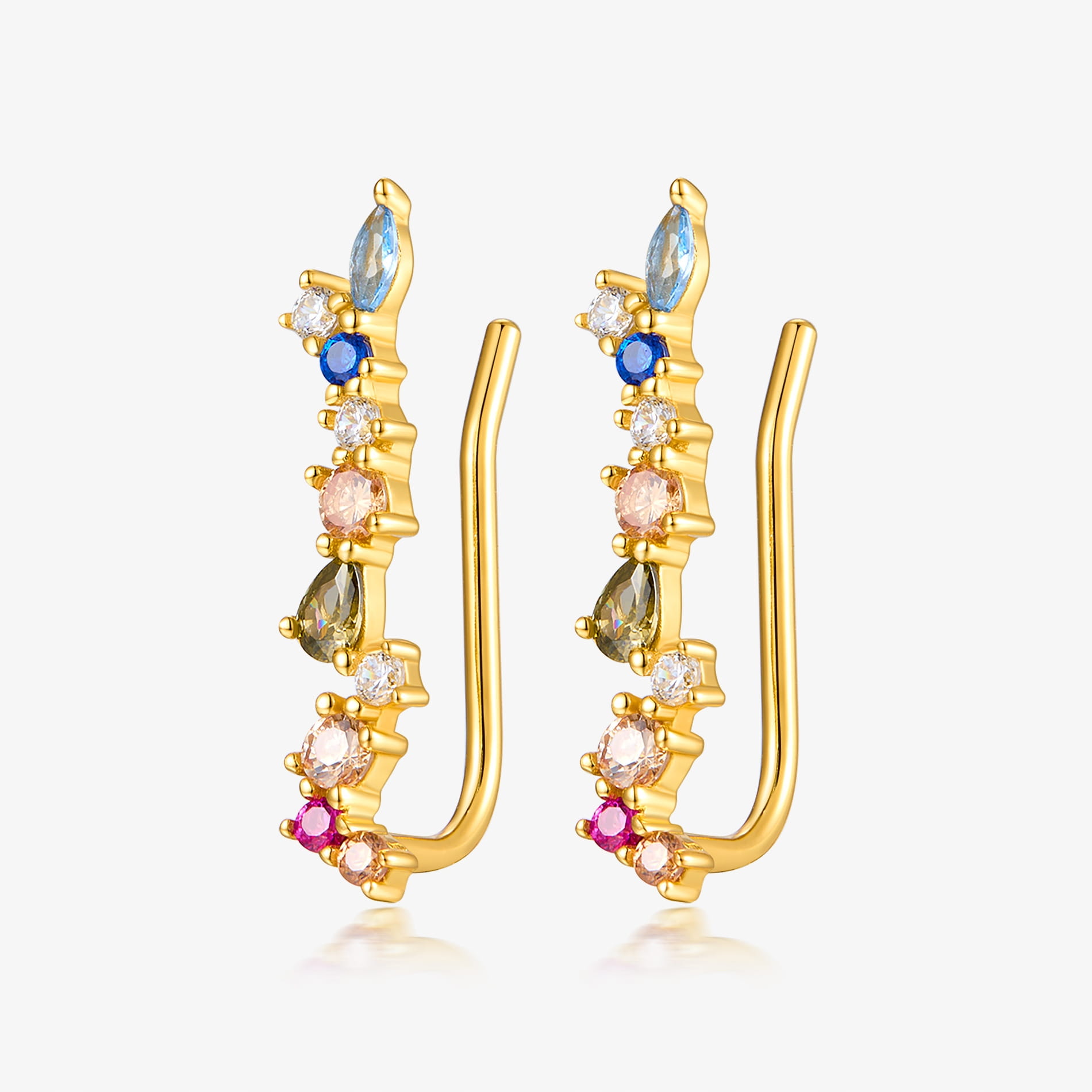 Fraise kolczyki srebrne S925 pozłacane nausznice z kolorowymi cyrkoniami