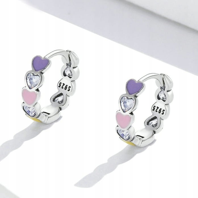 Fraise kolczyki srebrne S925 serduszka kolorowe z cyrkoniami