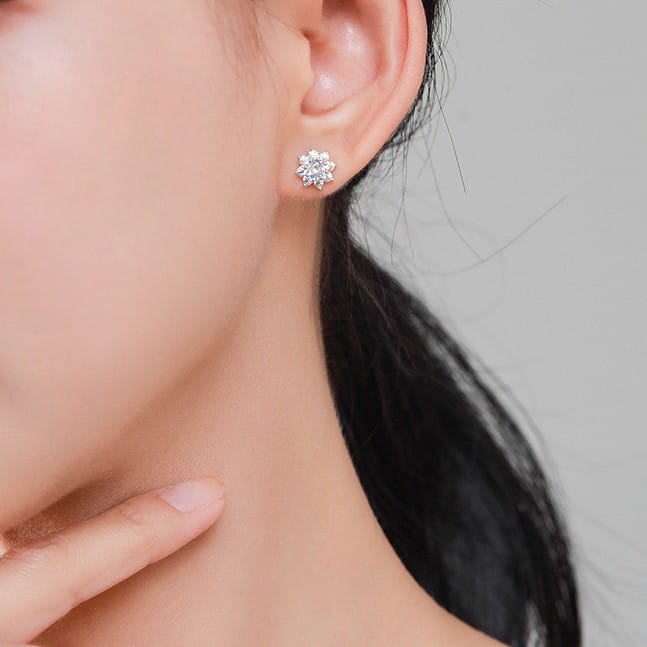 Fraise kolczyki srebro S925 kwiatki z białymi cyrkoniami