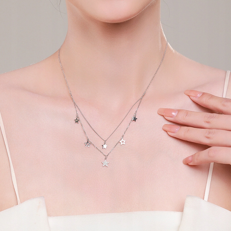 Fraise naszyjnik S925 gwiazdki cyrkonie podwójny