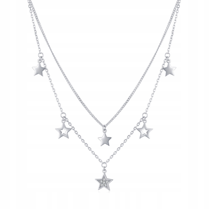 Piękny podwójny naszyjnik w którym środkowa gwiazdka wysadzana jest cyrkoniami. Naszyjnik wykonany jest ze srebra 925, dzięki czemu jest odporny na działanie czynników zewnętrznych.