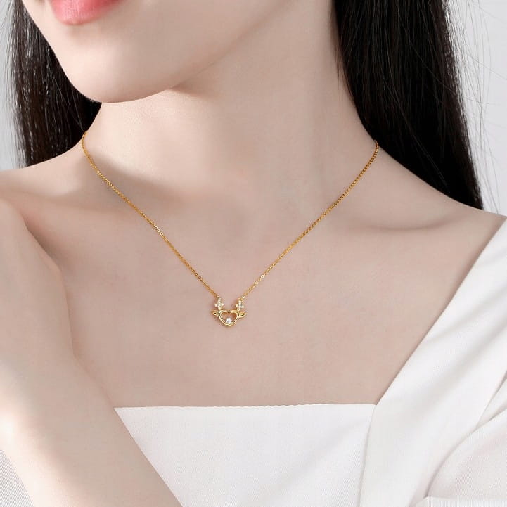 Piękny naszyjnik pozłacany 14 karatowym złotem, w którym różki wysadzane są cyrkoniami. Naszyjnik wykonany jest ze srebra 925, dzięki czemu jest odporny na działanie czynników zewnętrznych.