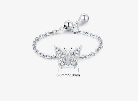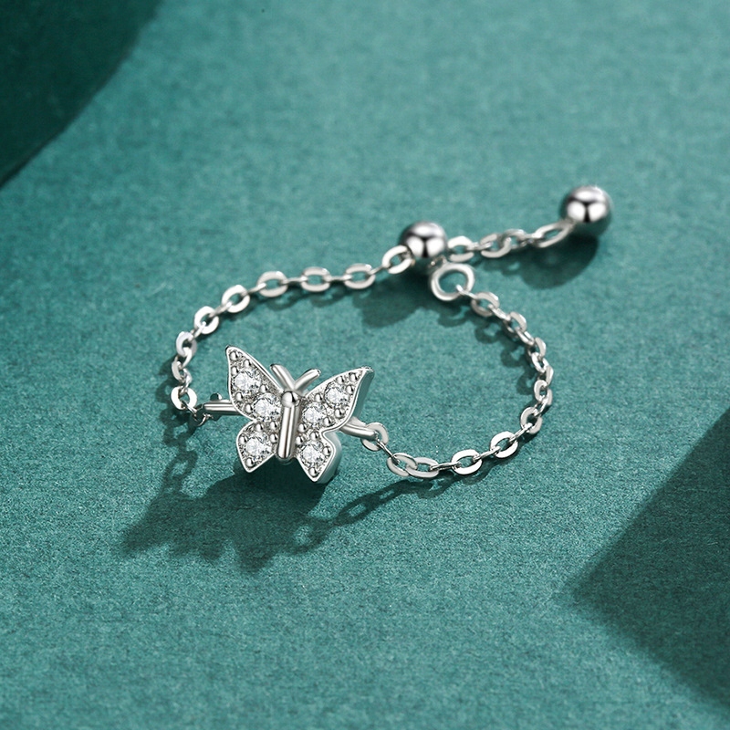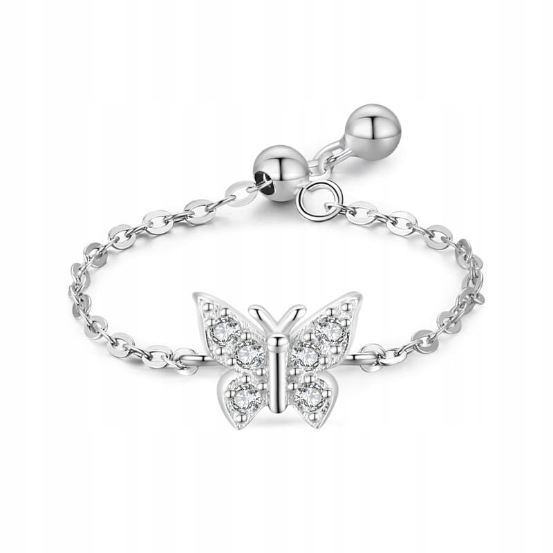 Srebrny regulowany pierścionek z motylkiem i cyrkoniami marki Fraise