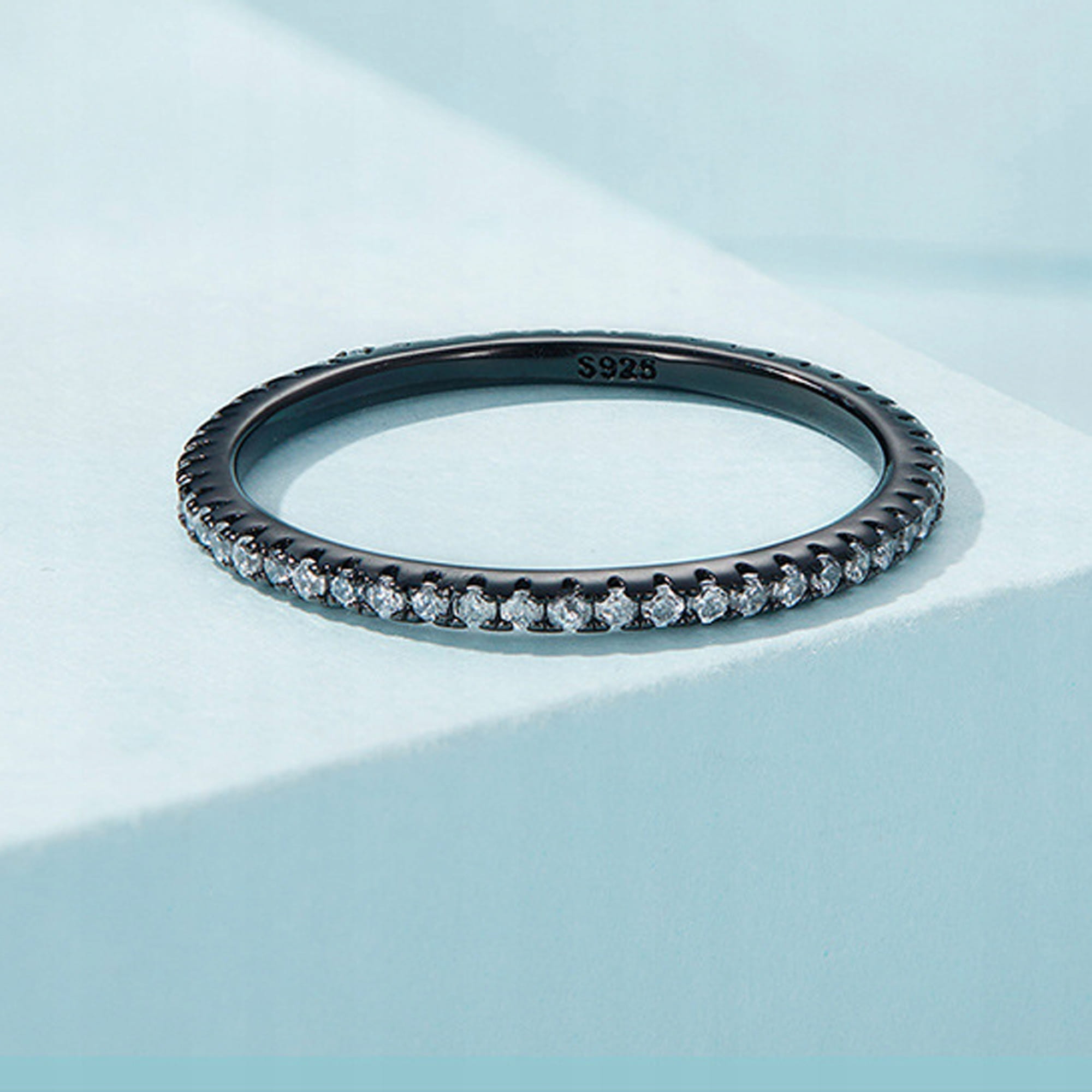 Elegancki Czarny Pierścionek z Cyrkoniami – Srebro 925
