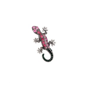 Nadaj swojemu stylowi wyjątkowego blasku! Ta elegancka broszka w kształcie jaszczurki to połączenie klasy i fantazji. Zdobiona różowymi i zielonymi cyrkoniami, pięknie mieni się w świetle, przyciągając wzrok i dodając charakteru każdej stylizacji.