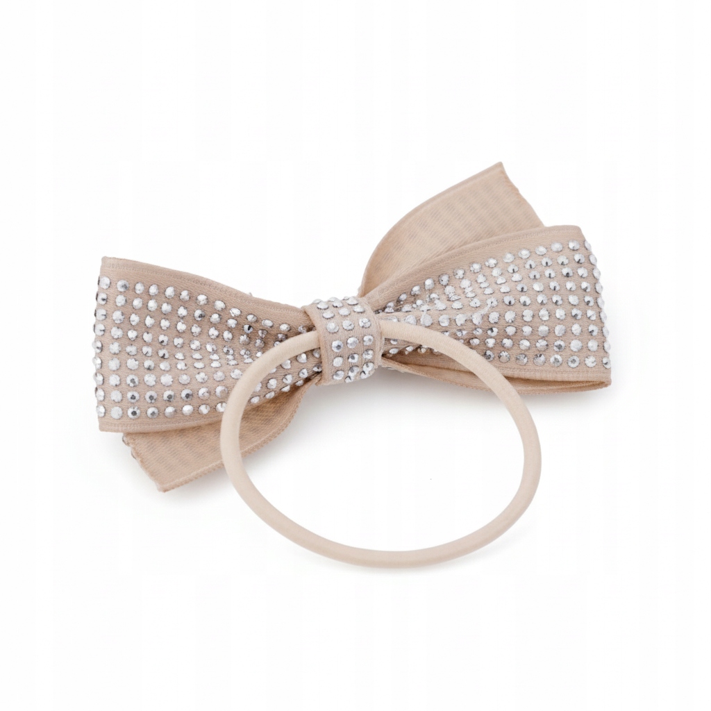 Gumka do włosów beżowa kokarda z kryształkami elegancka ozdoba koka kitki