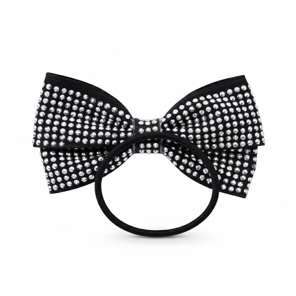 Gumka do włosów czarna kokarda z kryształkami elegancka ozdoba koka kitki