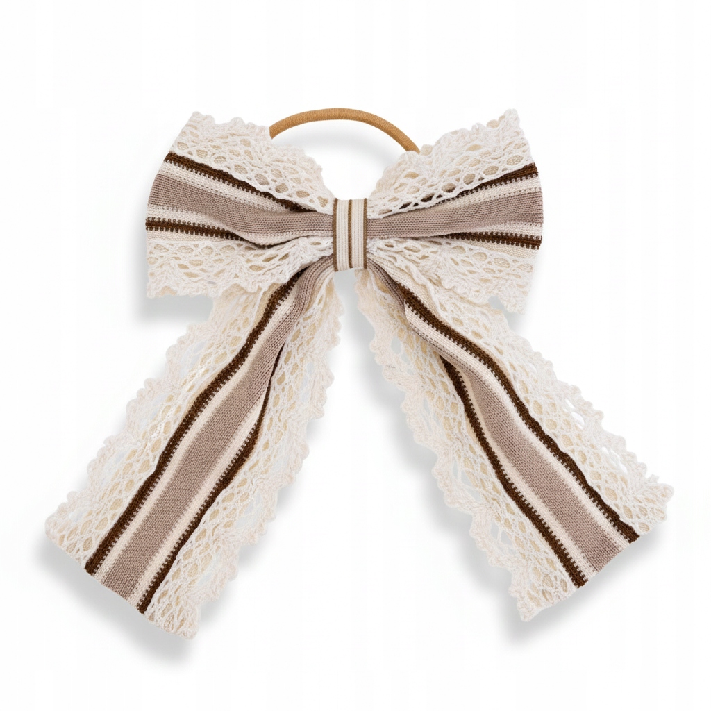 Gumka do włosów z kokardą koronka beżowa - styl boho | Little Angel
