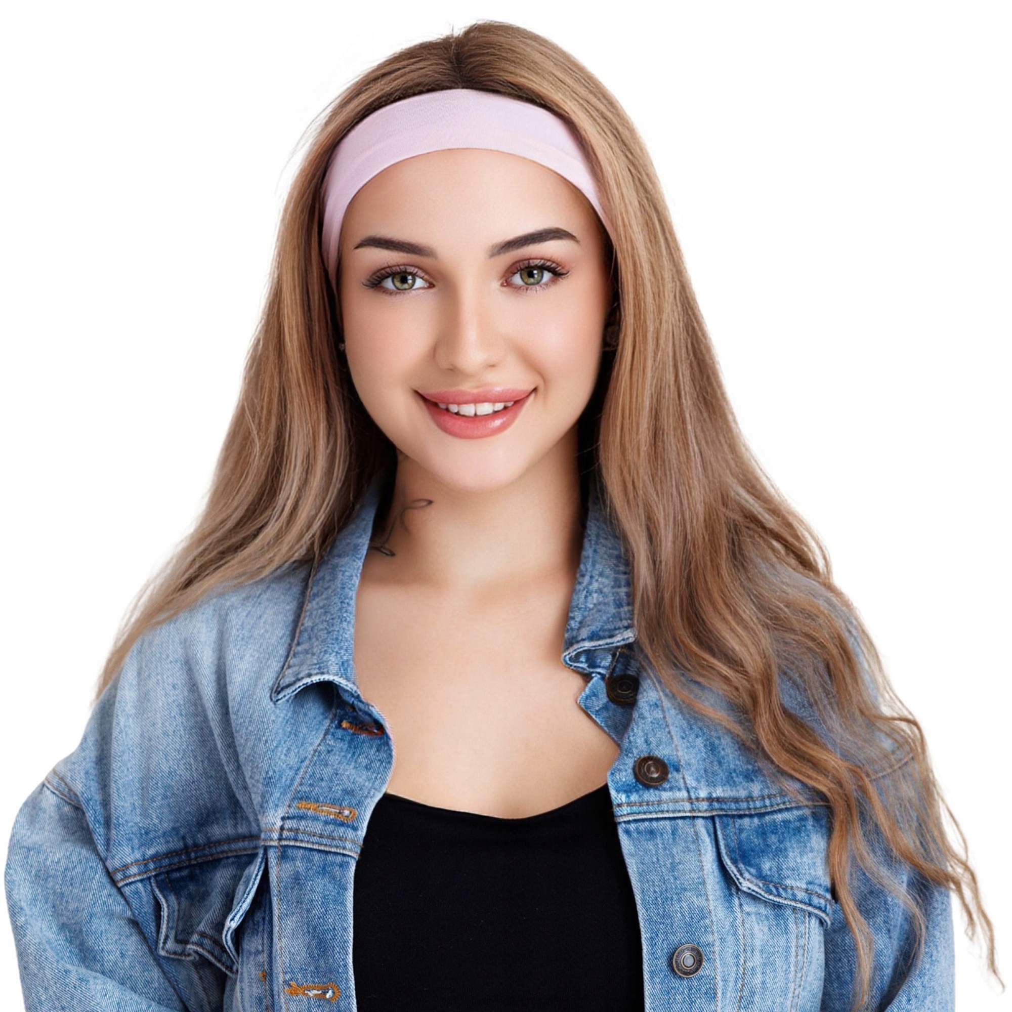 Jasnoróżowa opaska elastyczna do włosów bawełniana uniwersalna sportowa