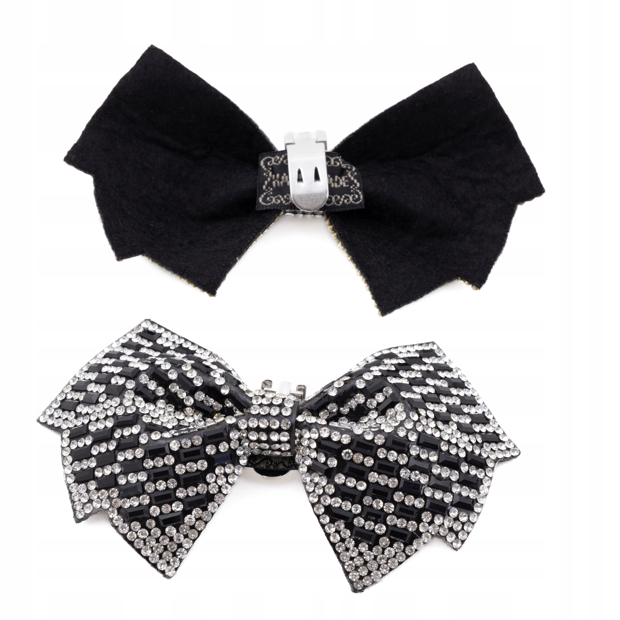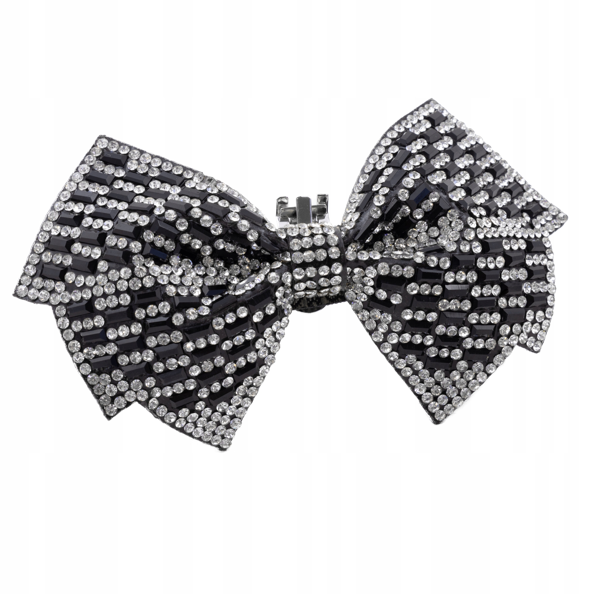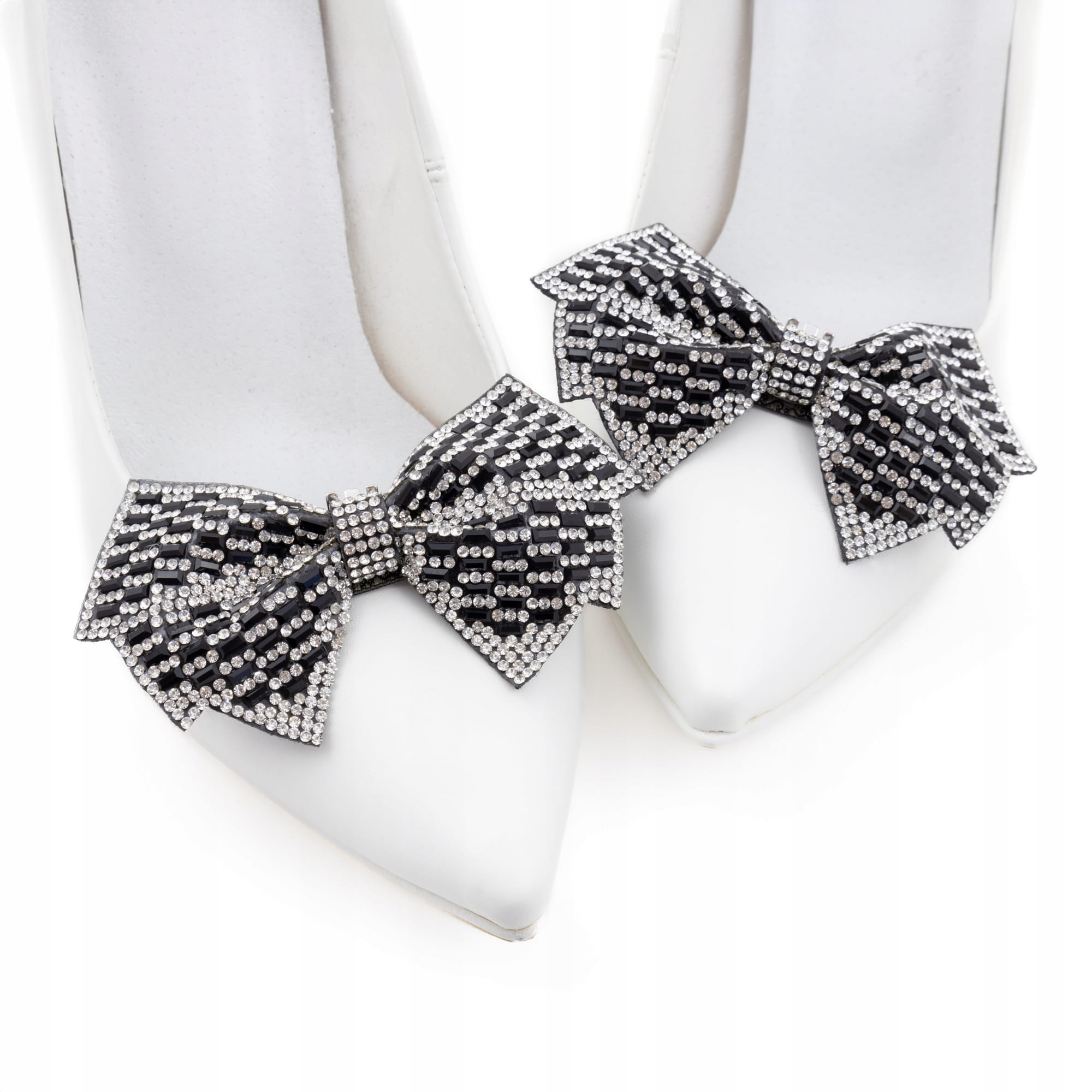 KLIPSY do butów Szpilek dekoracyjne duże kokardy czarno srebrne cyrkonie