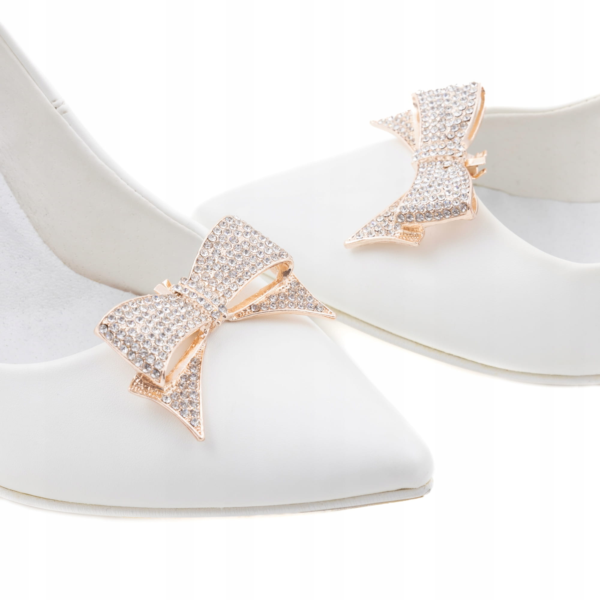KLIPSY do butów Szpilek ślub kokardki z cyrkoniami złote