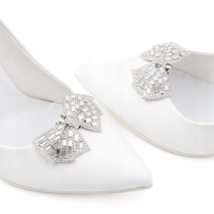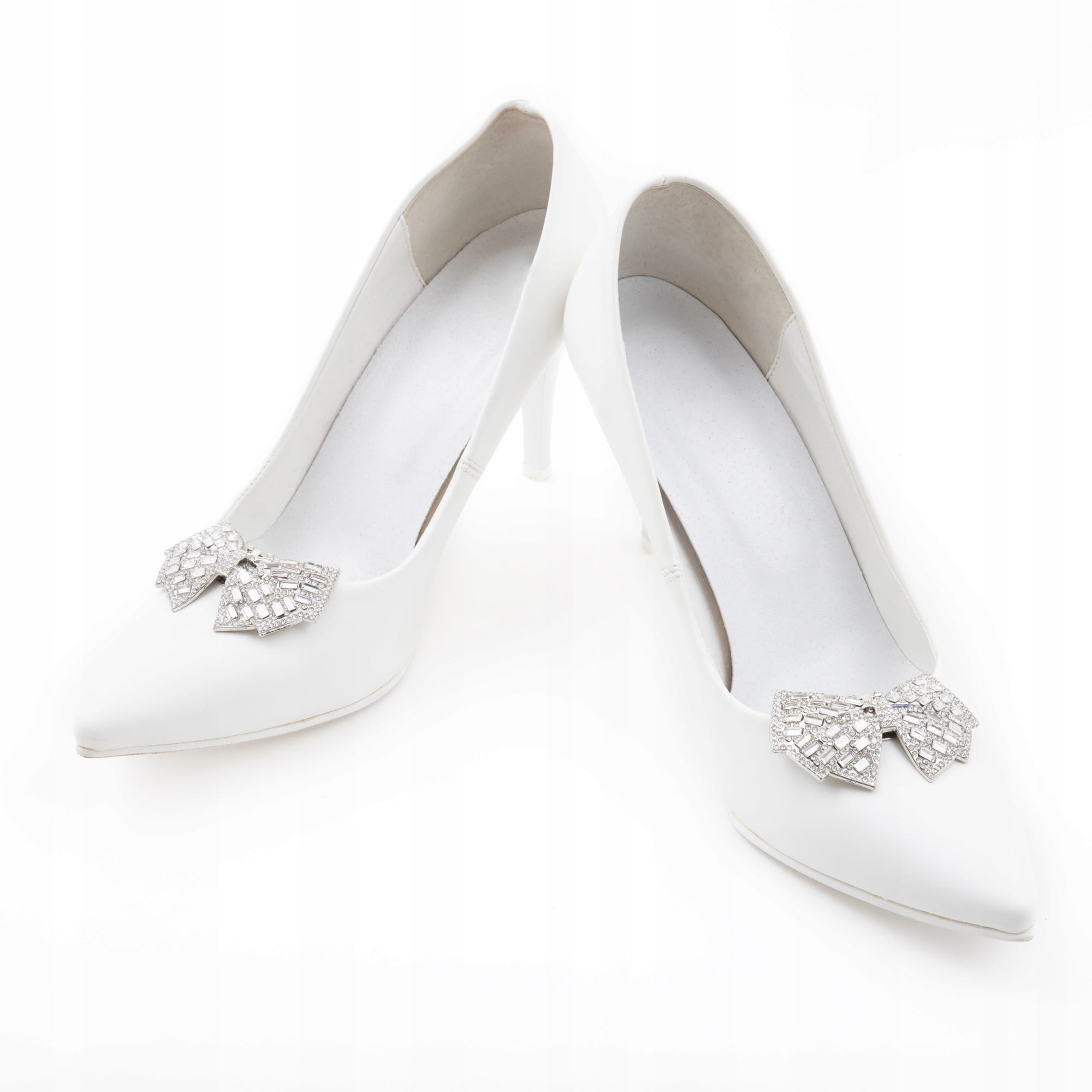 KLIPSY do butów Szpilek ślub kokardy srebrne z cyrkoniami