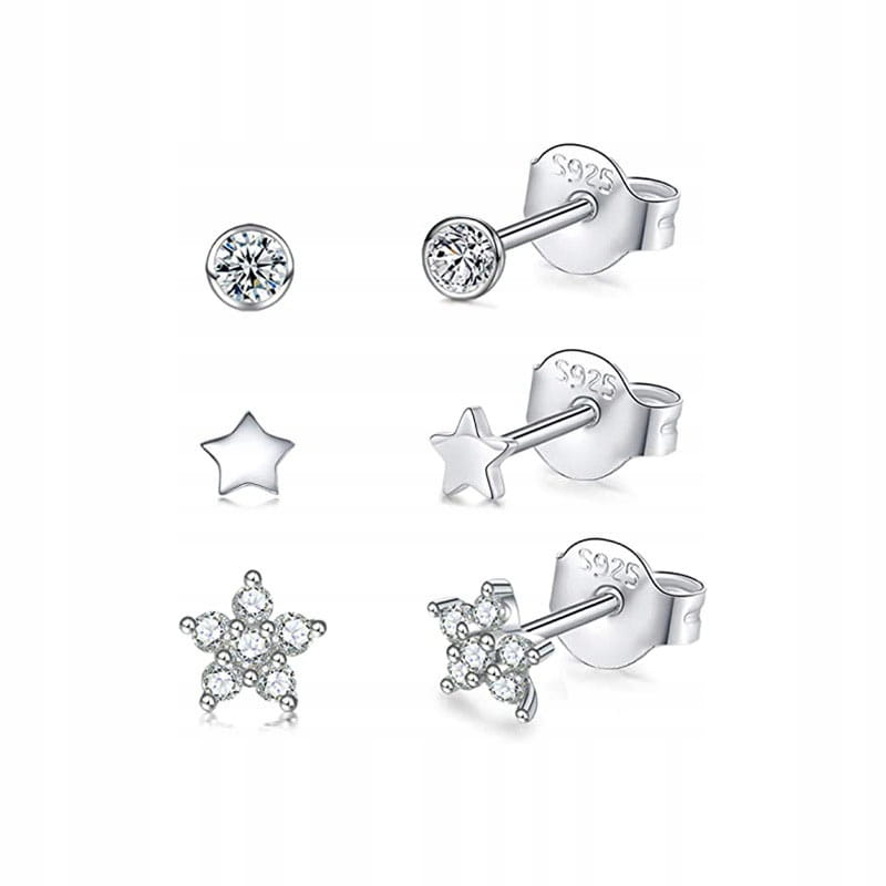 KOLCZYKI 3 pary srebrne cyrkonie Srebro 925 zestaw