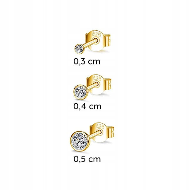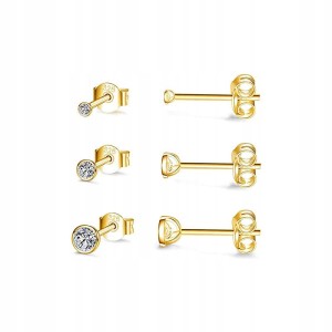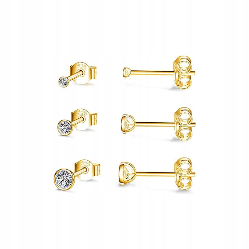KOLCZYKI 3 pary złote cyrkonie srebro 925 pozłacan