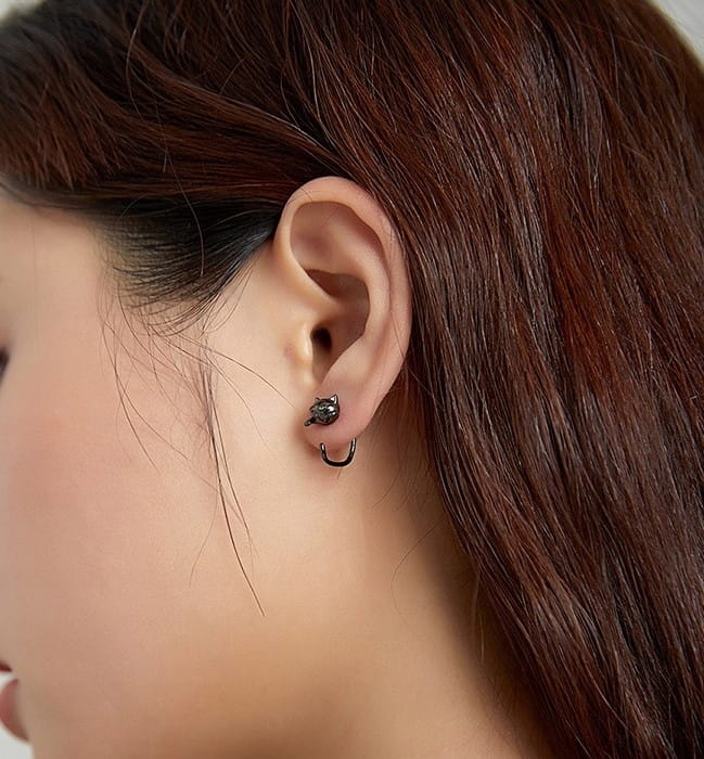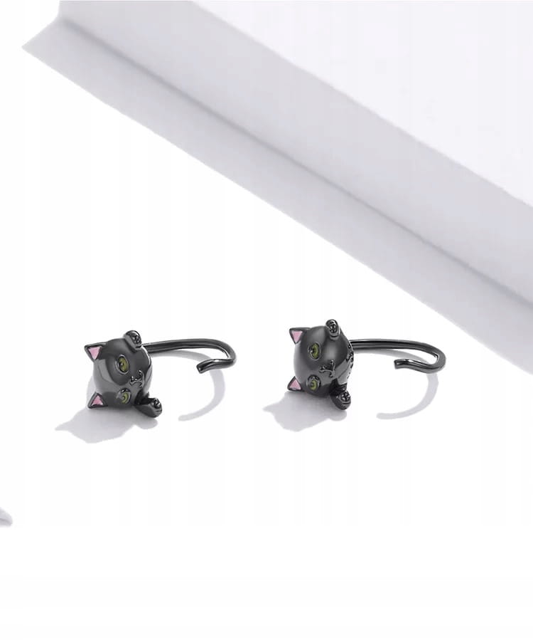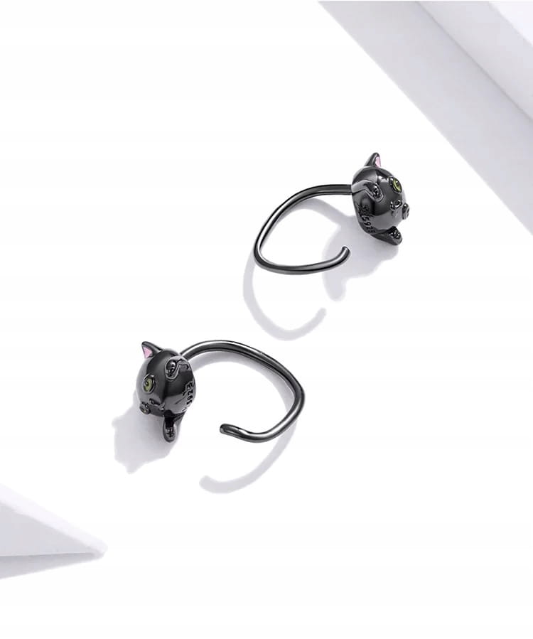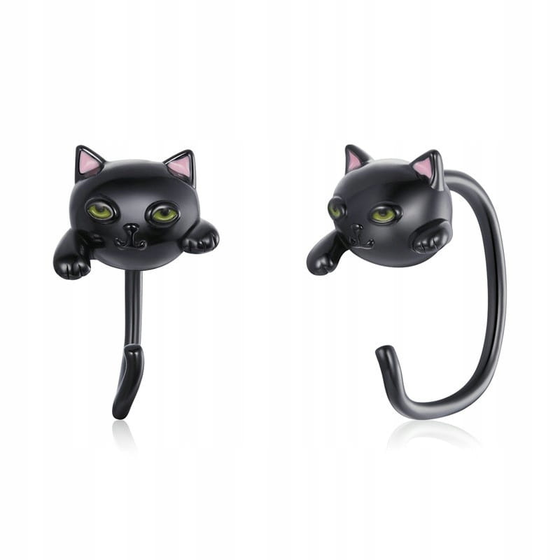 KOLCZYKI srebrne Koty z ogonem Srebro 925 czarne
