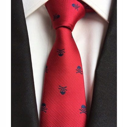 Czerwony krawat z czaszkami