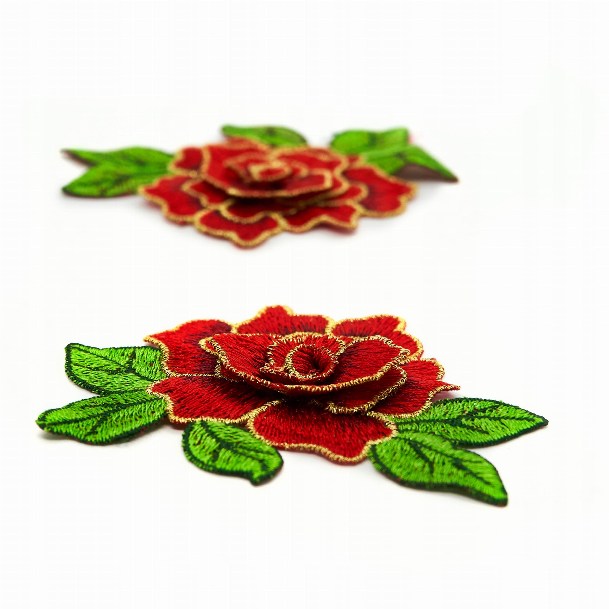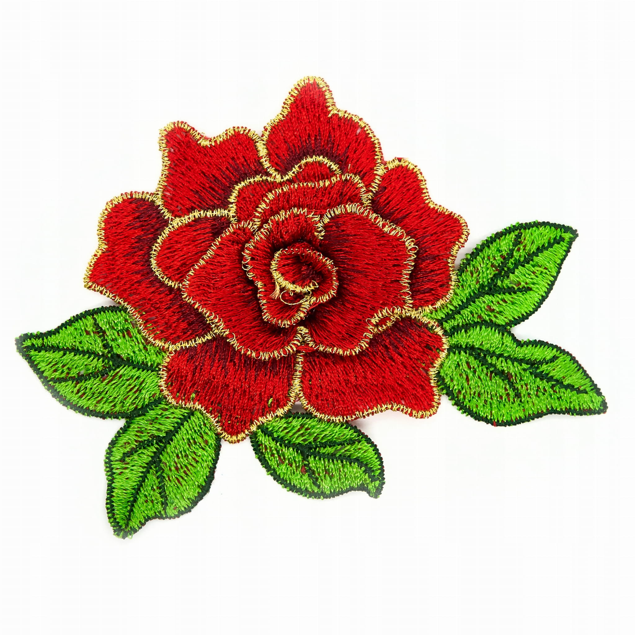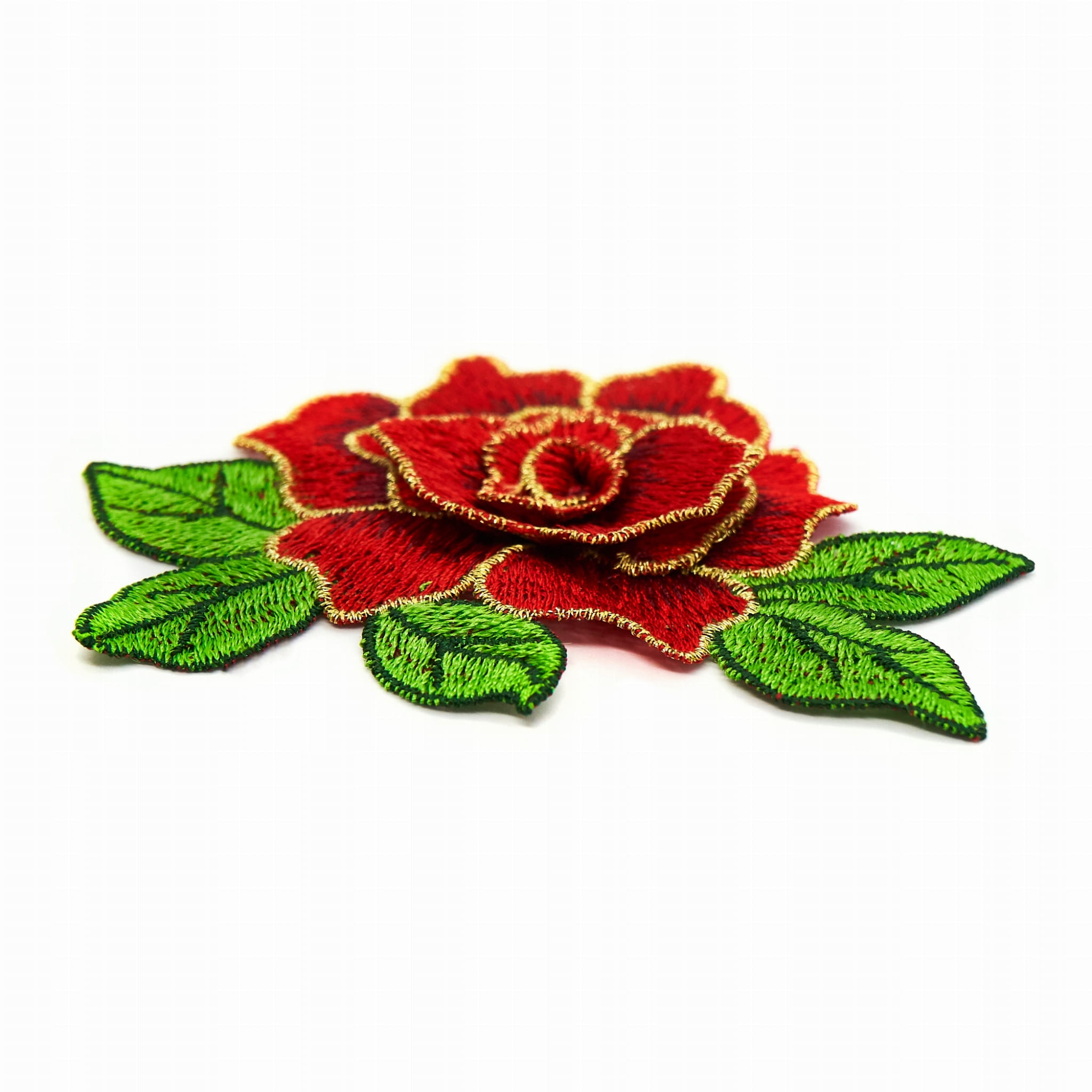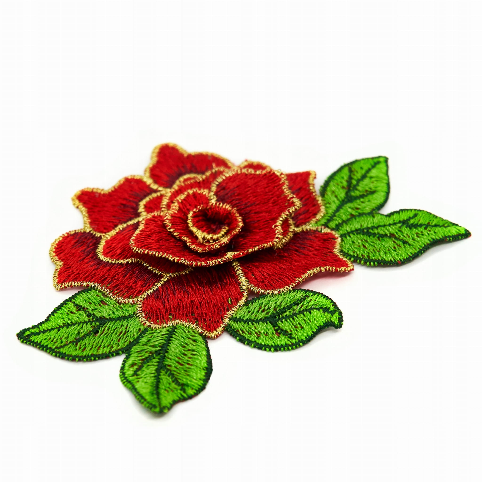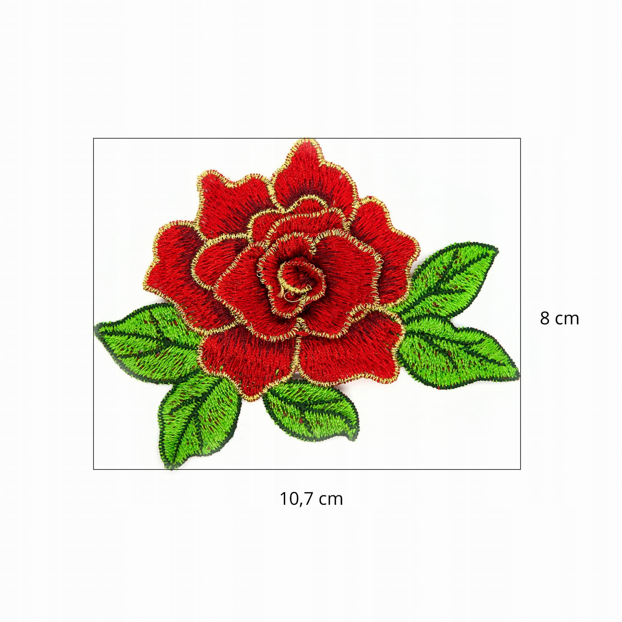 KWIAT CZERWONA róża aplikacja złote obszycie