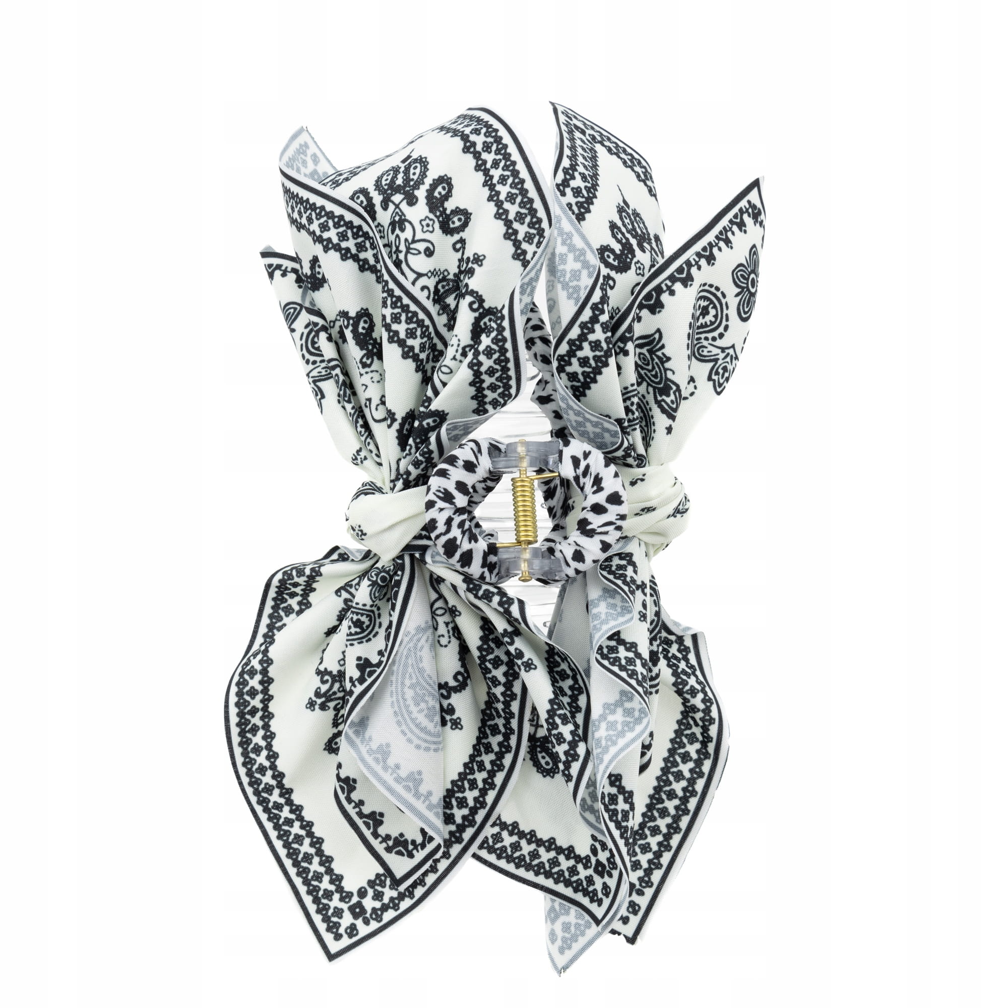 Klamra spinka do włosów ozdoba kokarda biało czarna