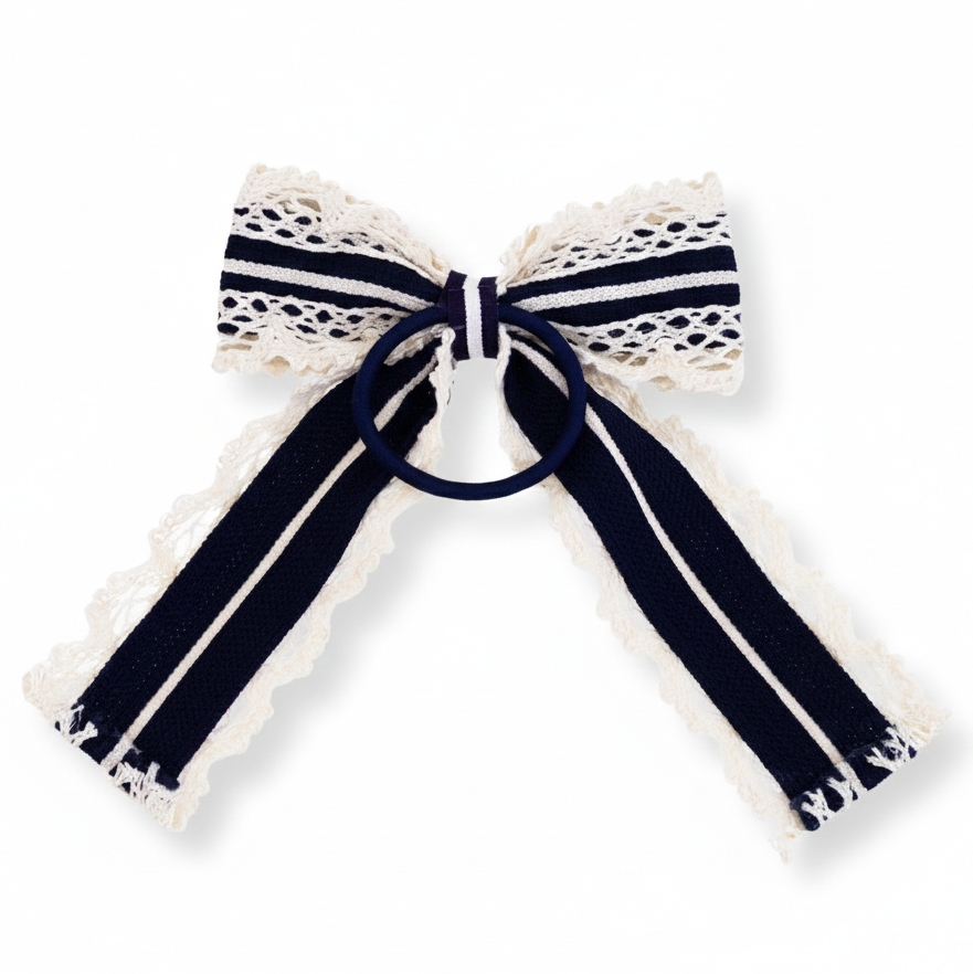 Gumka do włosów z kokardą koronka granatowa – styl marynarski