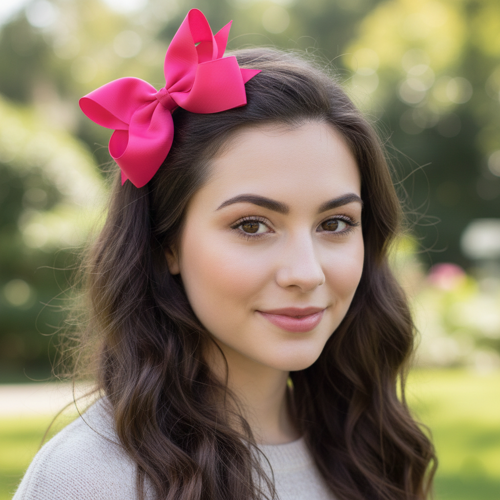 Kokarda duża ozdobna spinka do włosów Ciemno Różowa