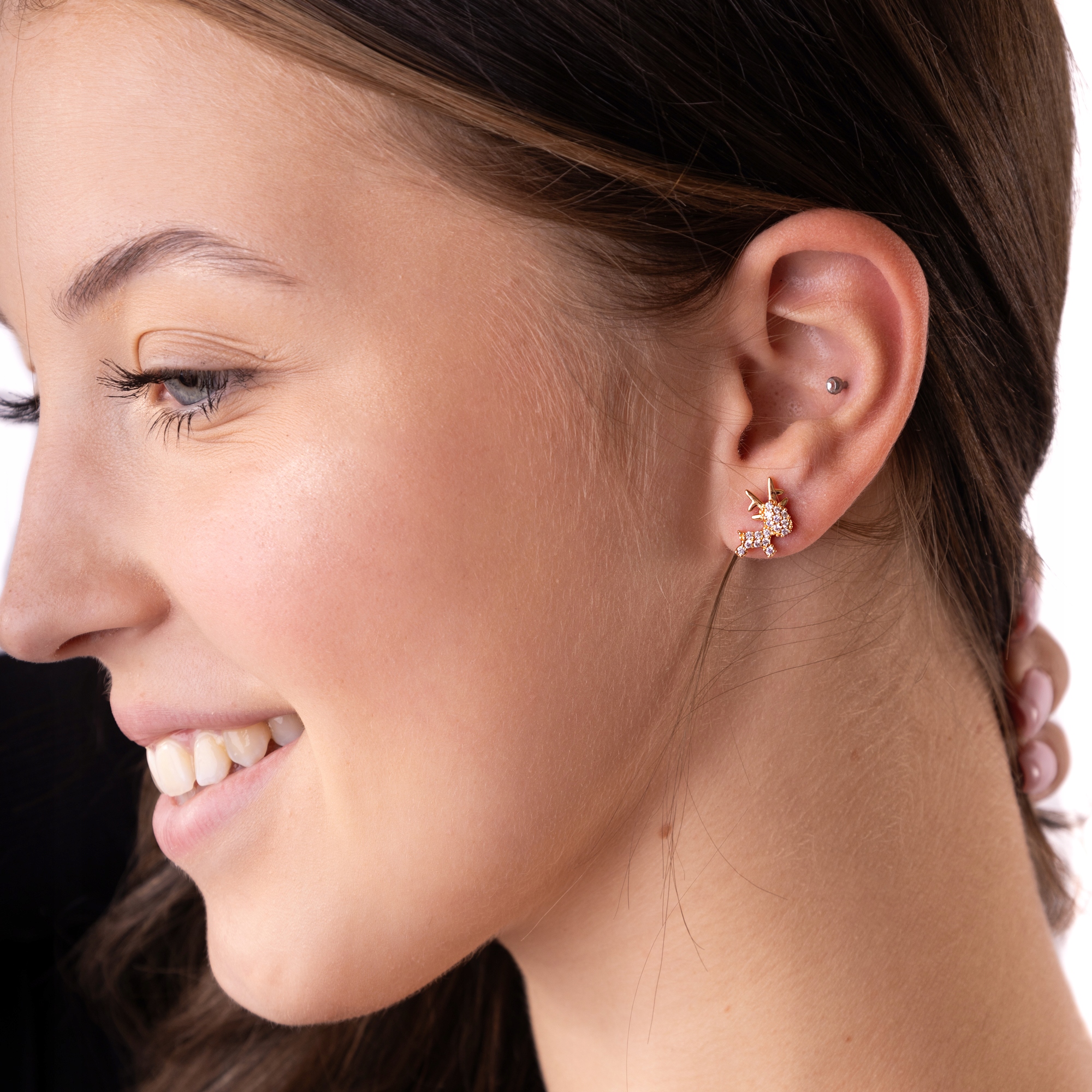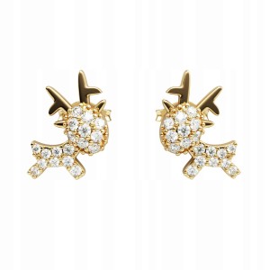 Kolczyki Jelonki Świąteczne z cyrkoniami złote Reniferki