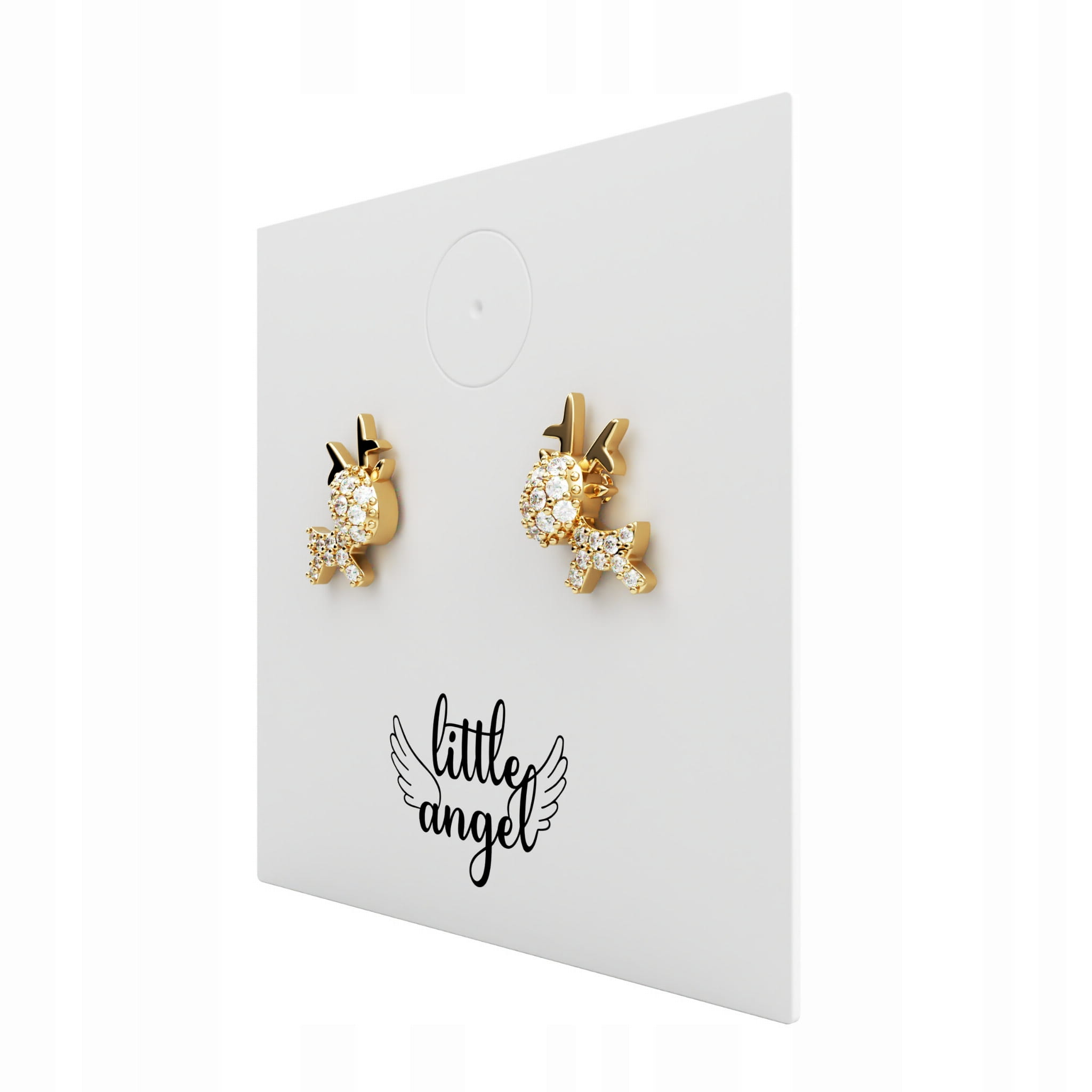 Kolczyki marki Little Angel wykonane z miedzi, nie posiadają w swoim składzie rtęci, niklu, ołowiu ani aluminium.