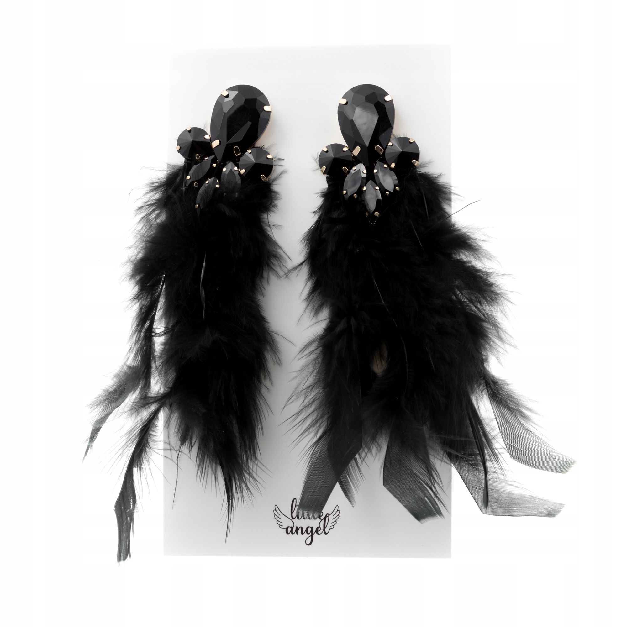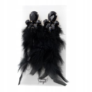 Długie czarne kolczyki z piórami