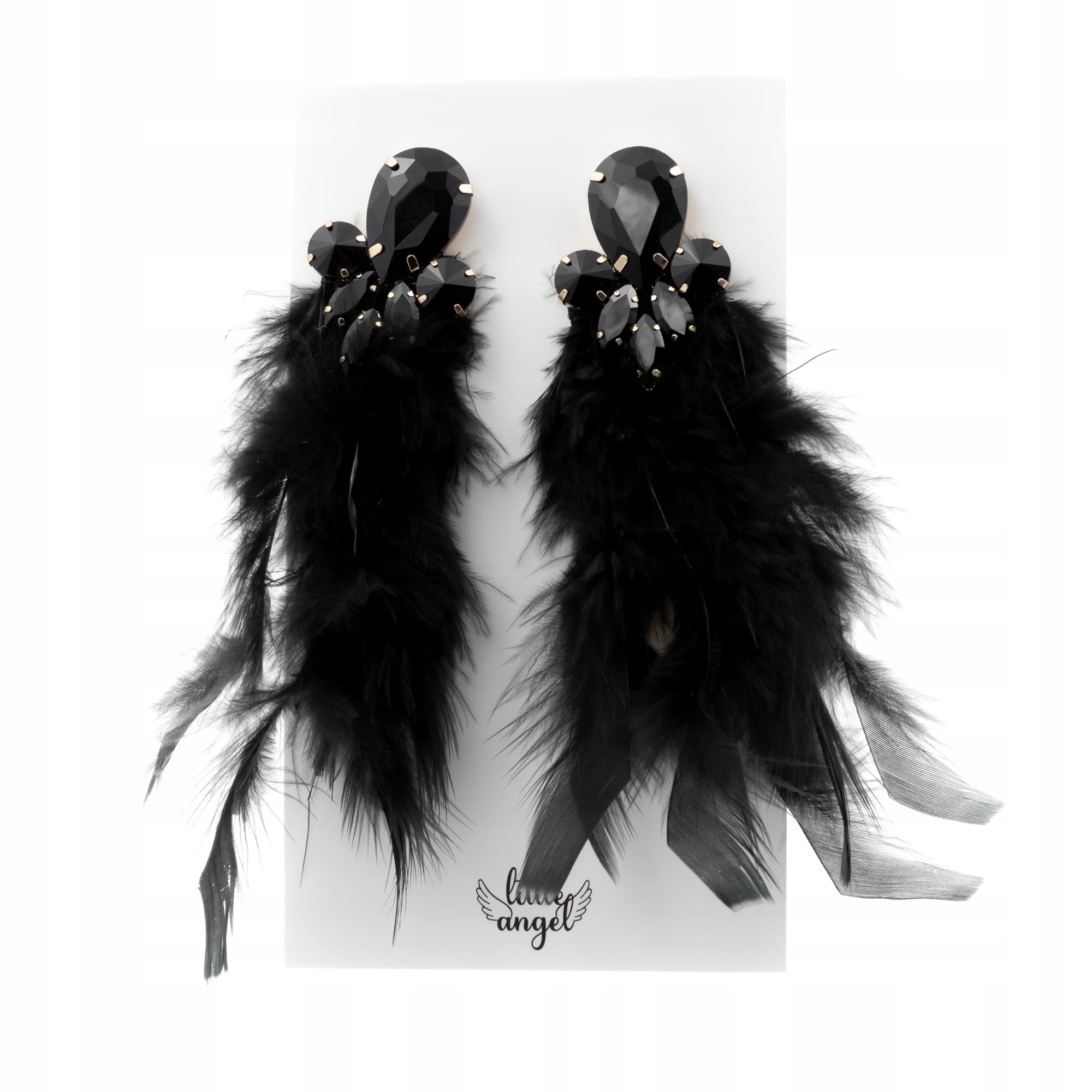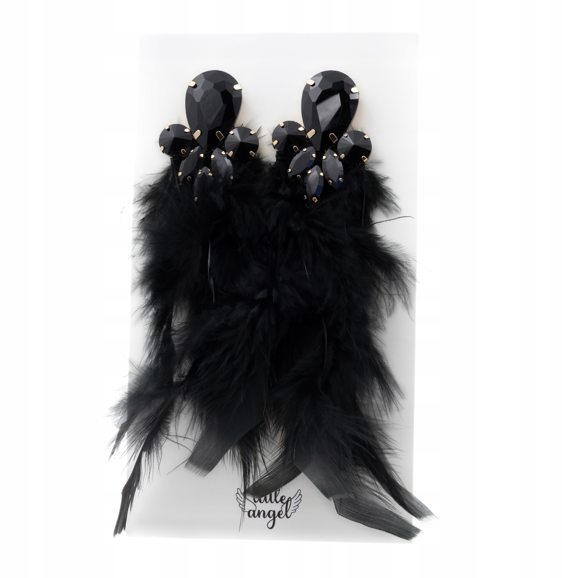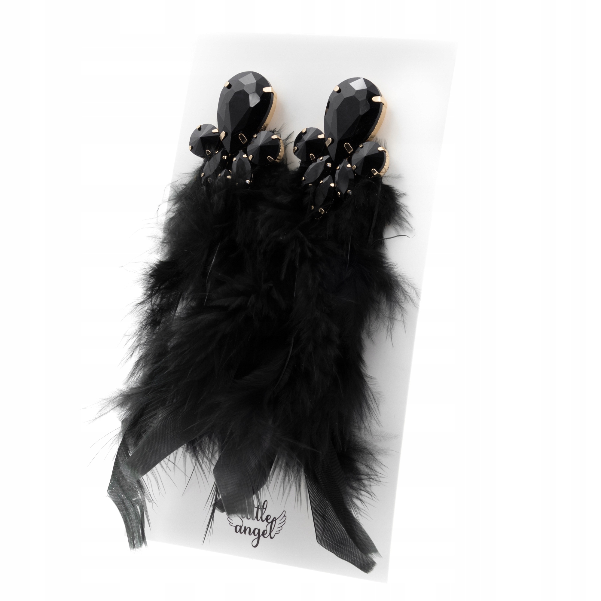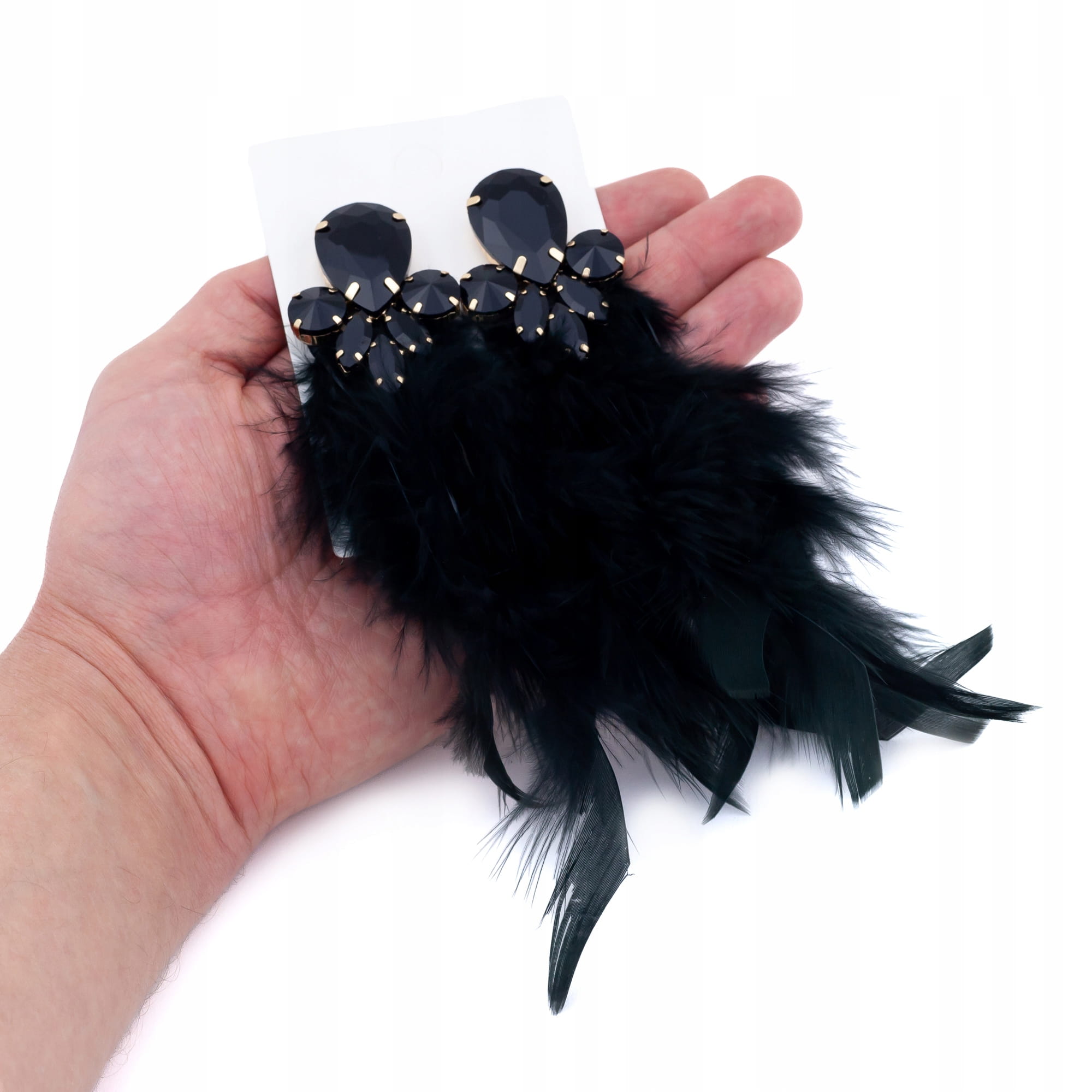 Piękne wiszące kolczyki z czarnymi piórami i cyrkoniami