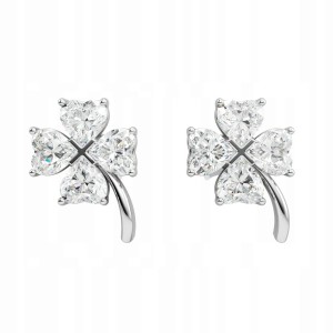 Kolczyki Srebrne sztyfty Koniczynka z cyrkoniami na szczęście
