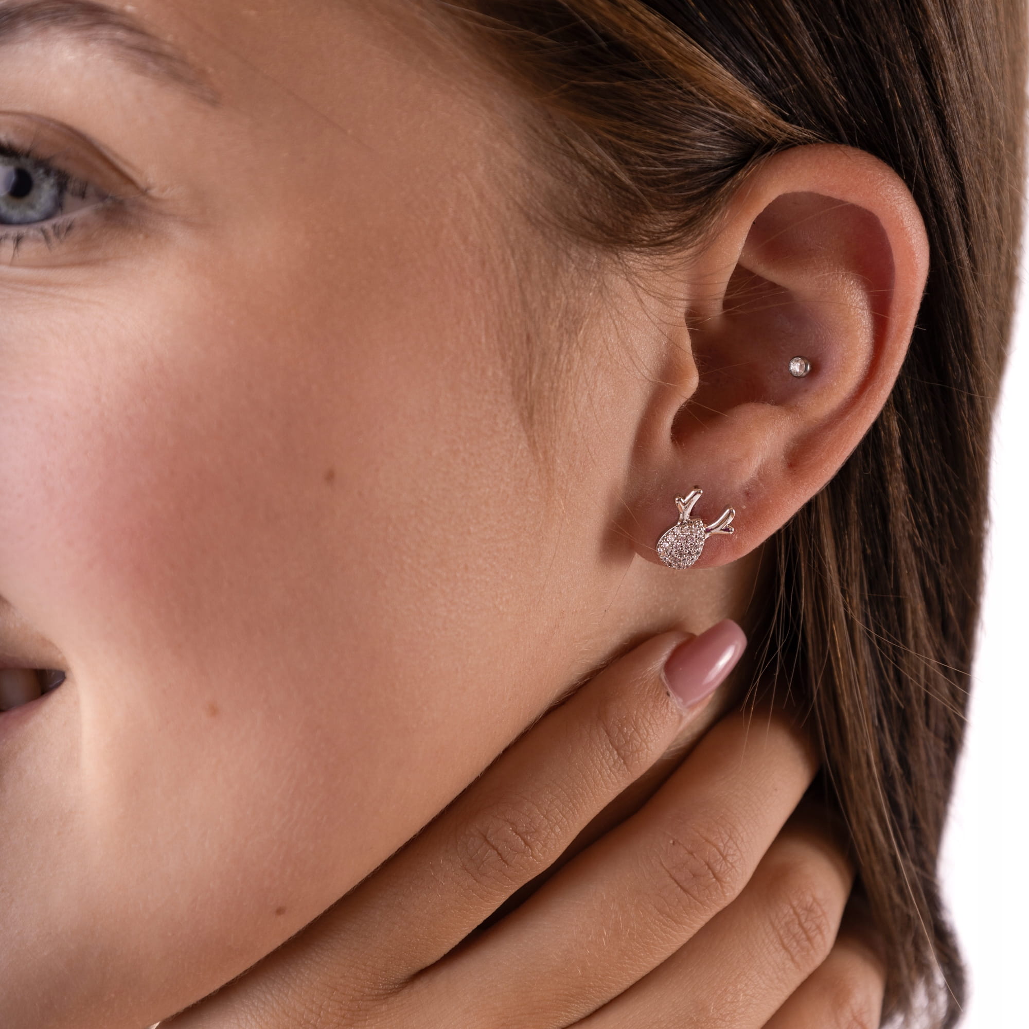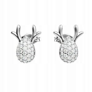 Kolczyki Świąteczne Reniferki srebrne z białymi cyrkoniami