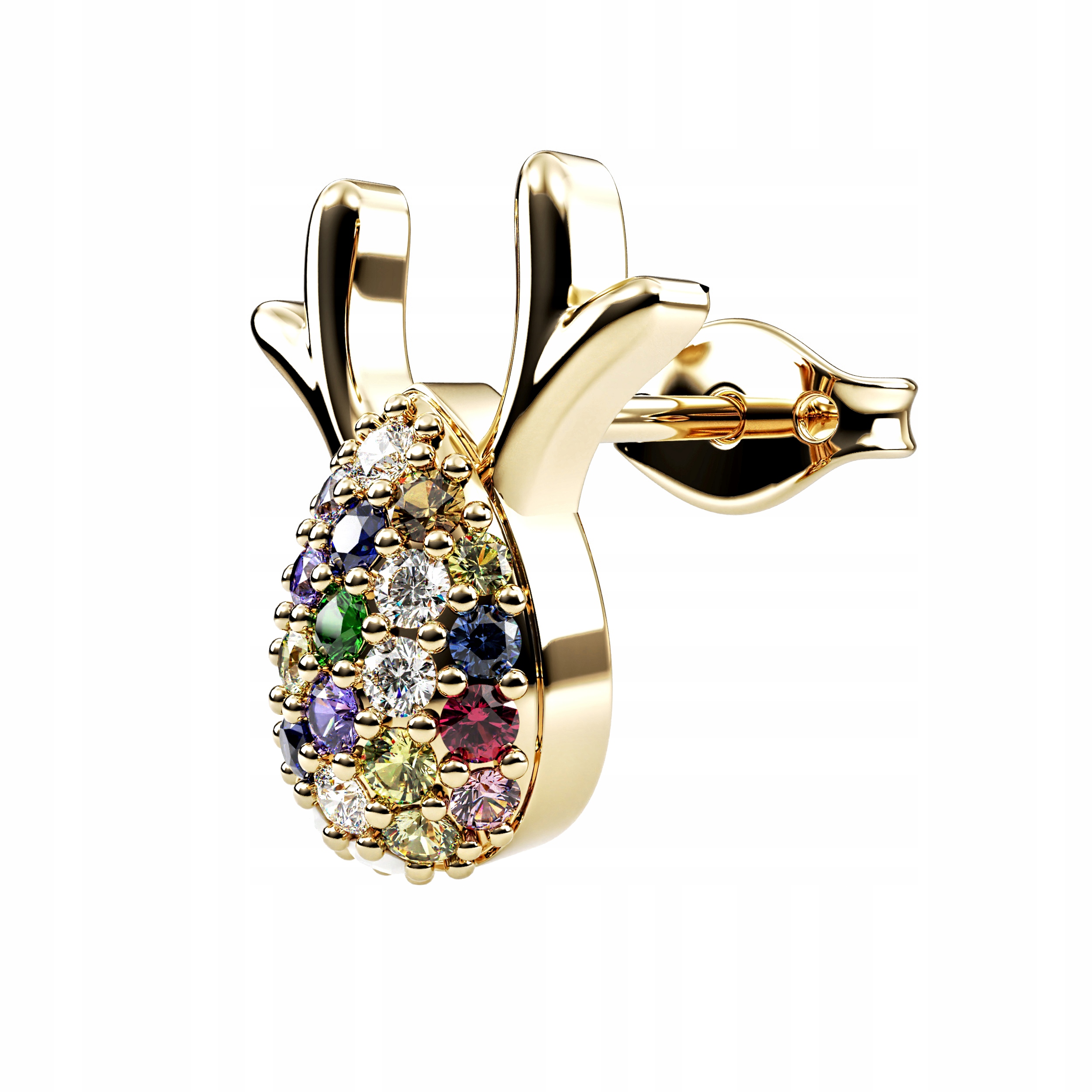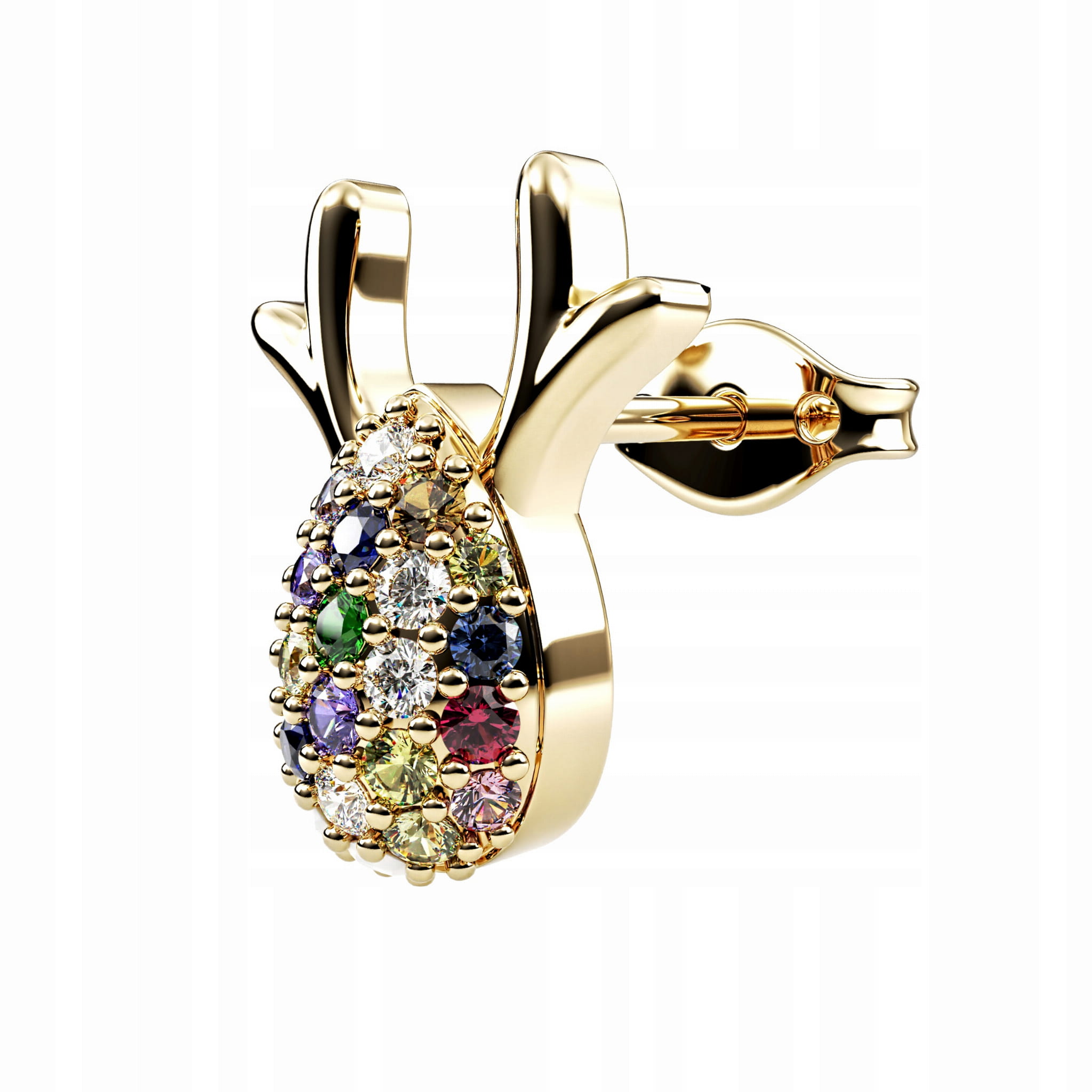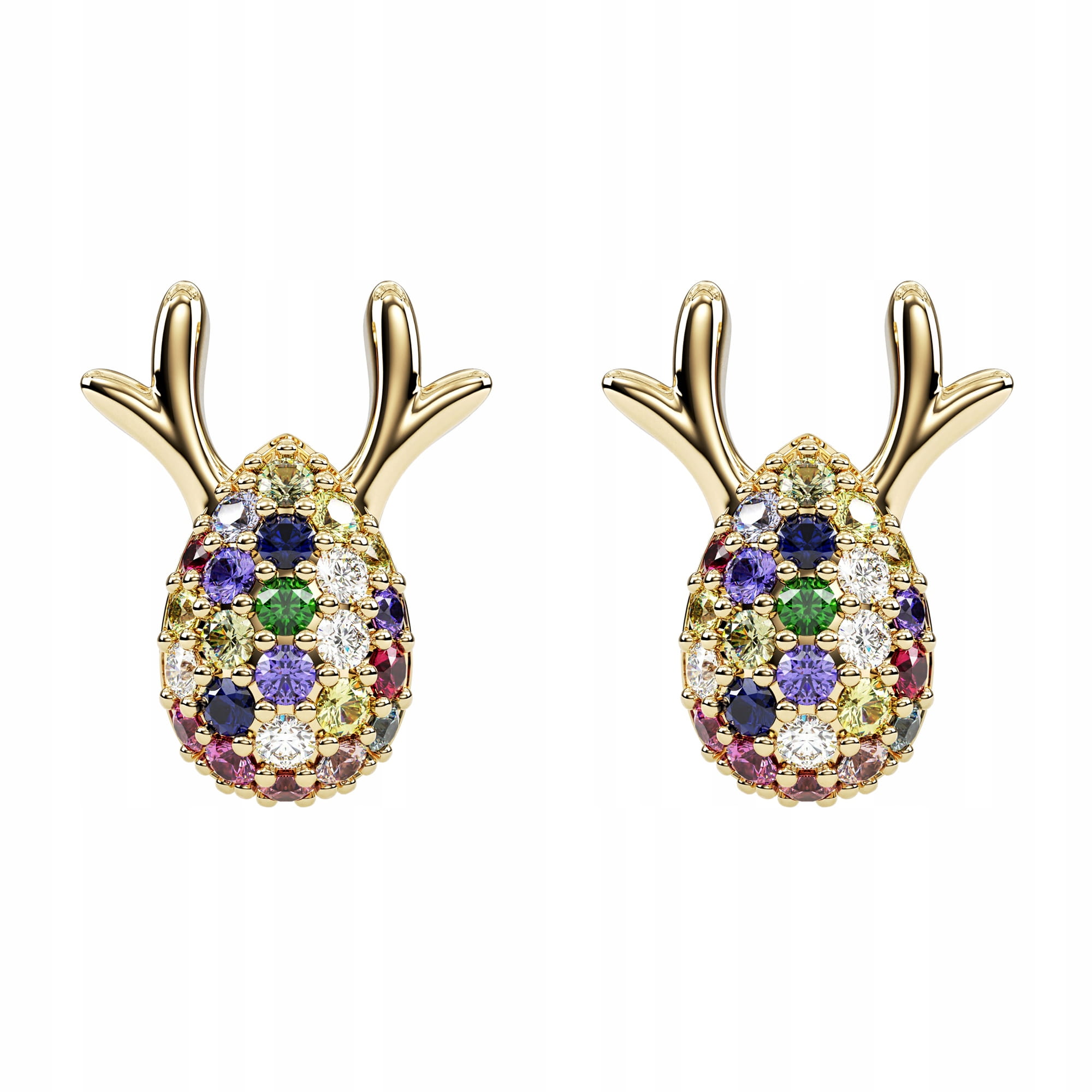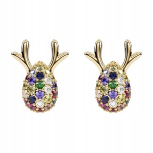 Kolczyki Świąteczne Reniferki złote z kolorowymi cyrkoniami