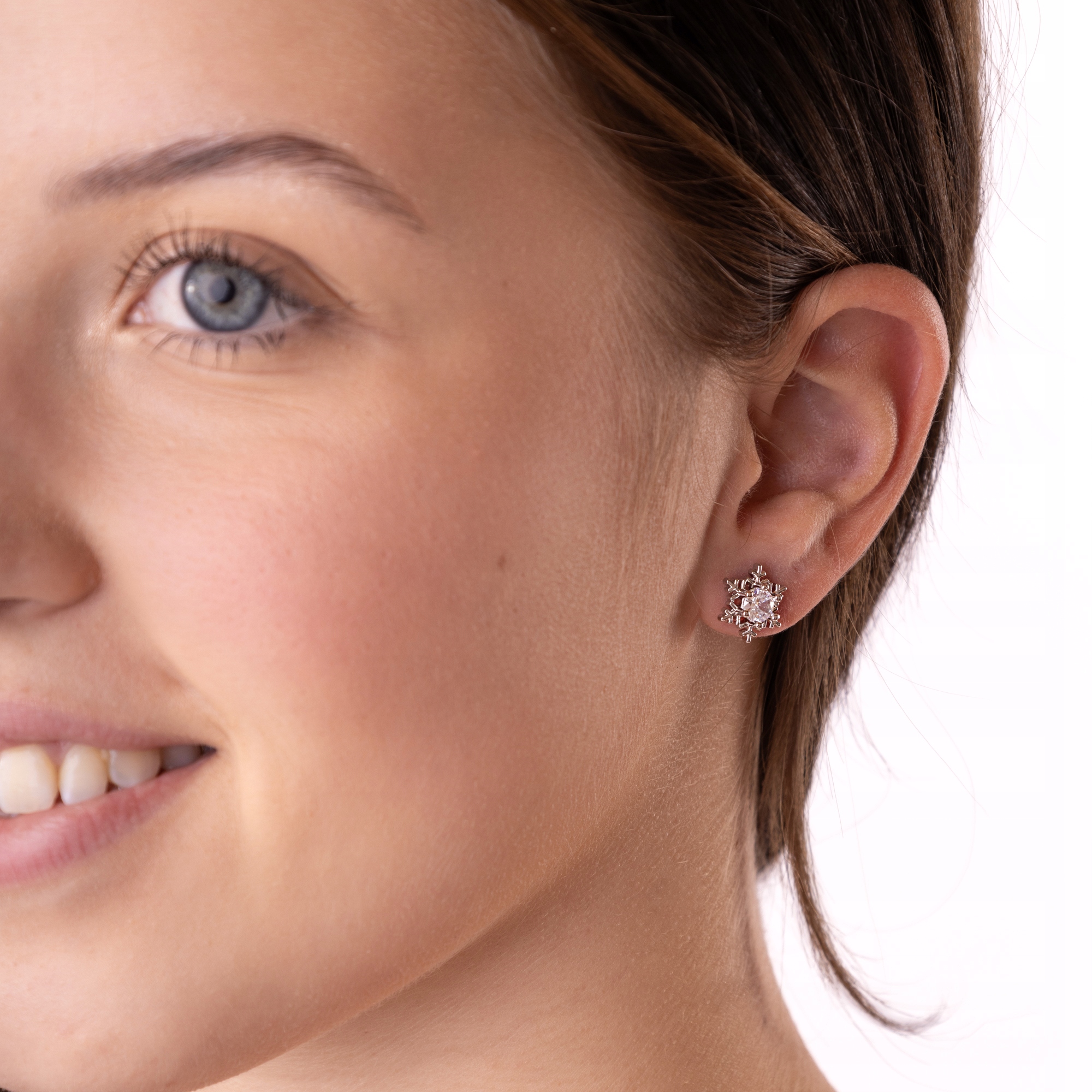 Kolczyki Świąteczne Śnieżynki srebrne z cyrkonią