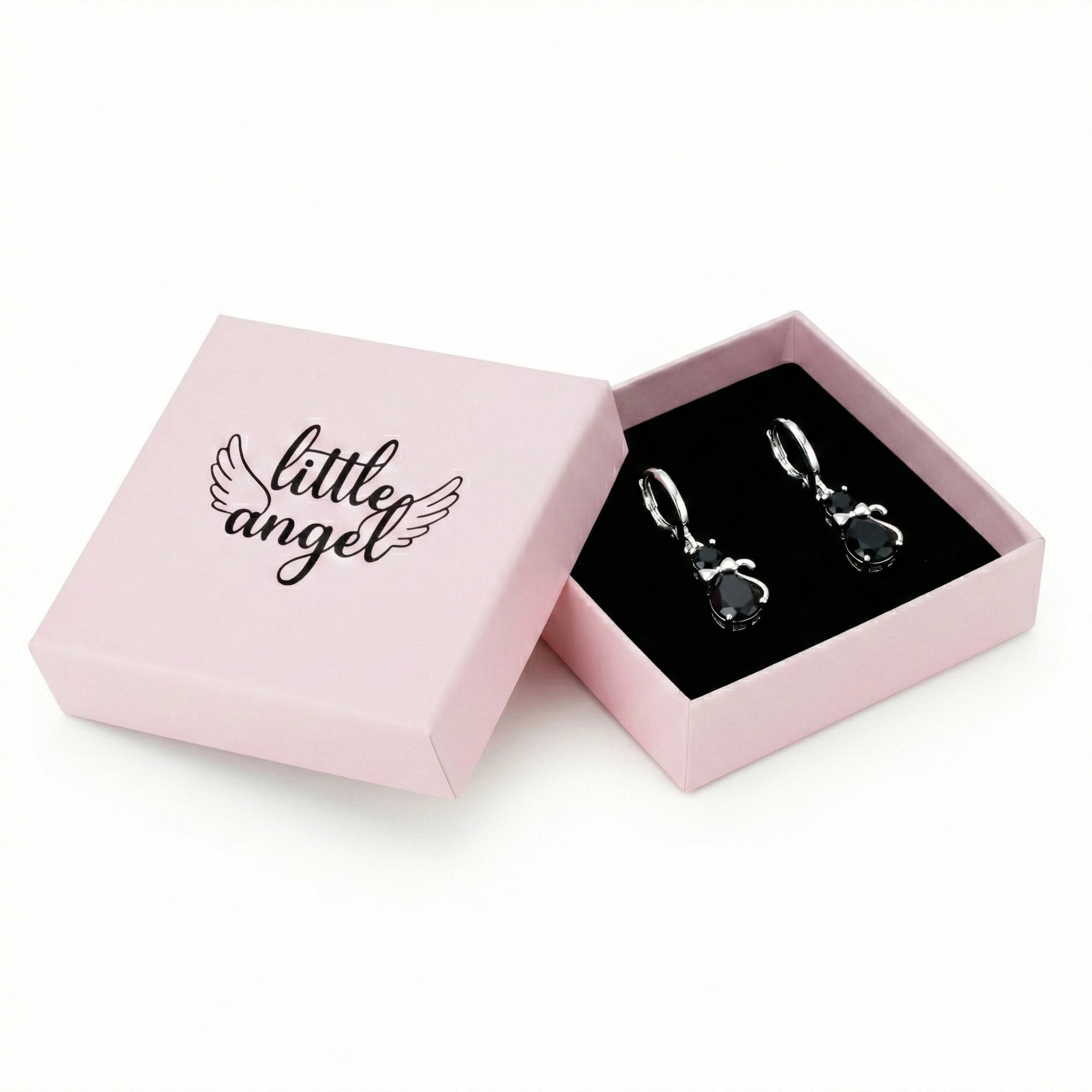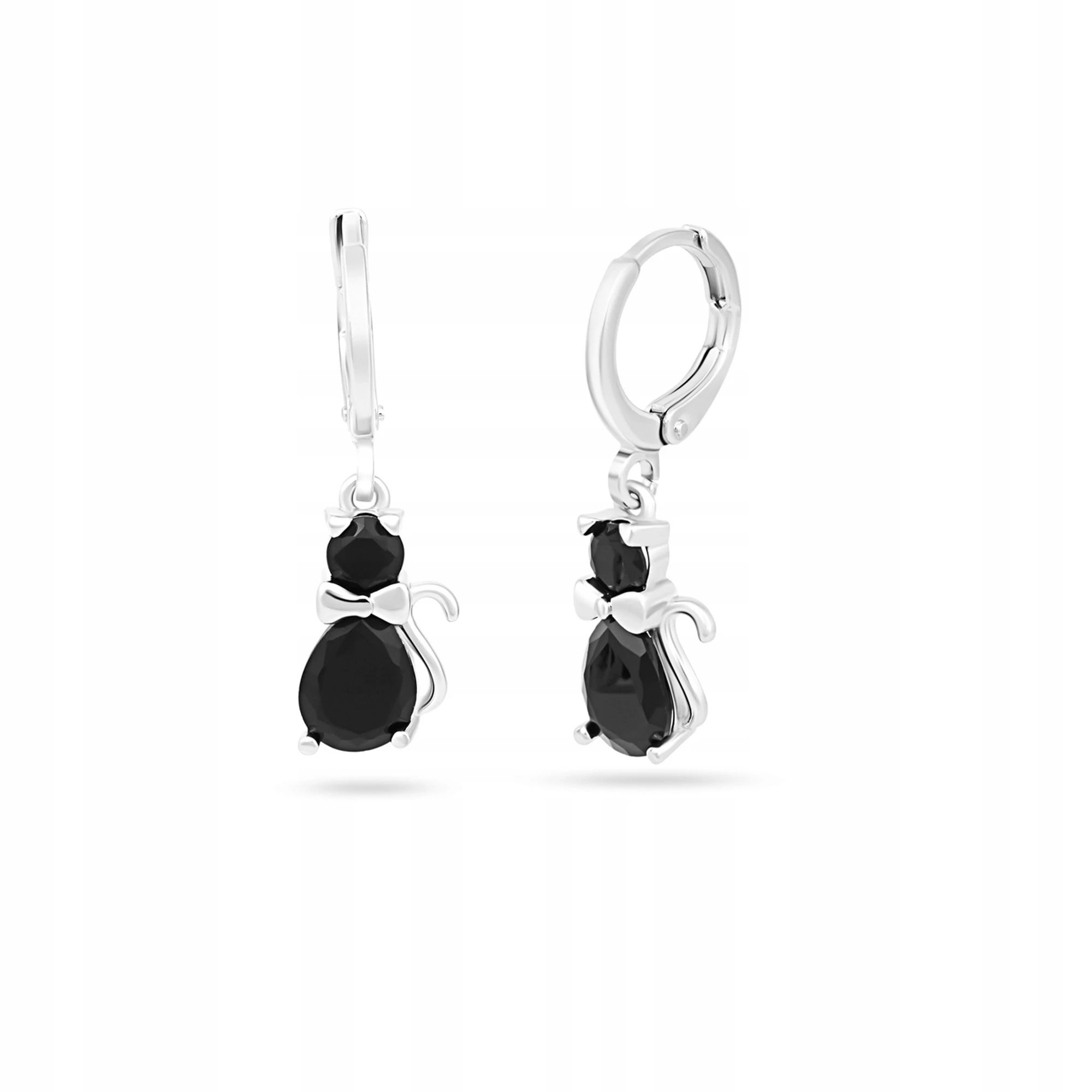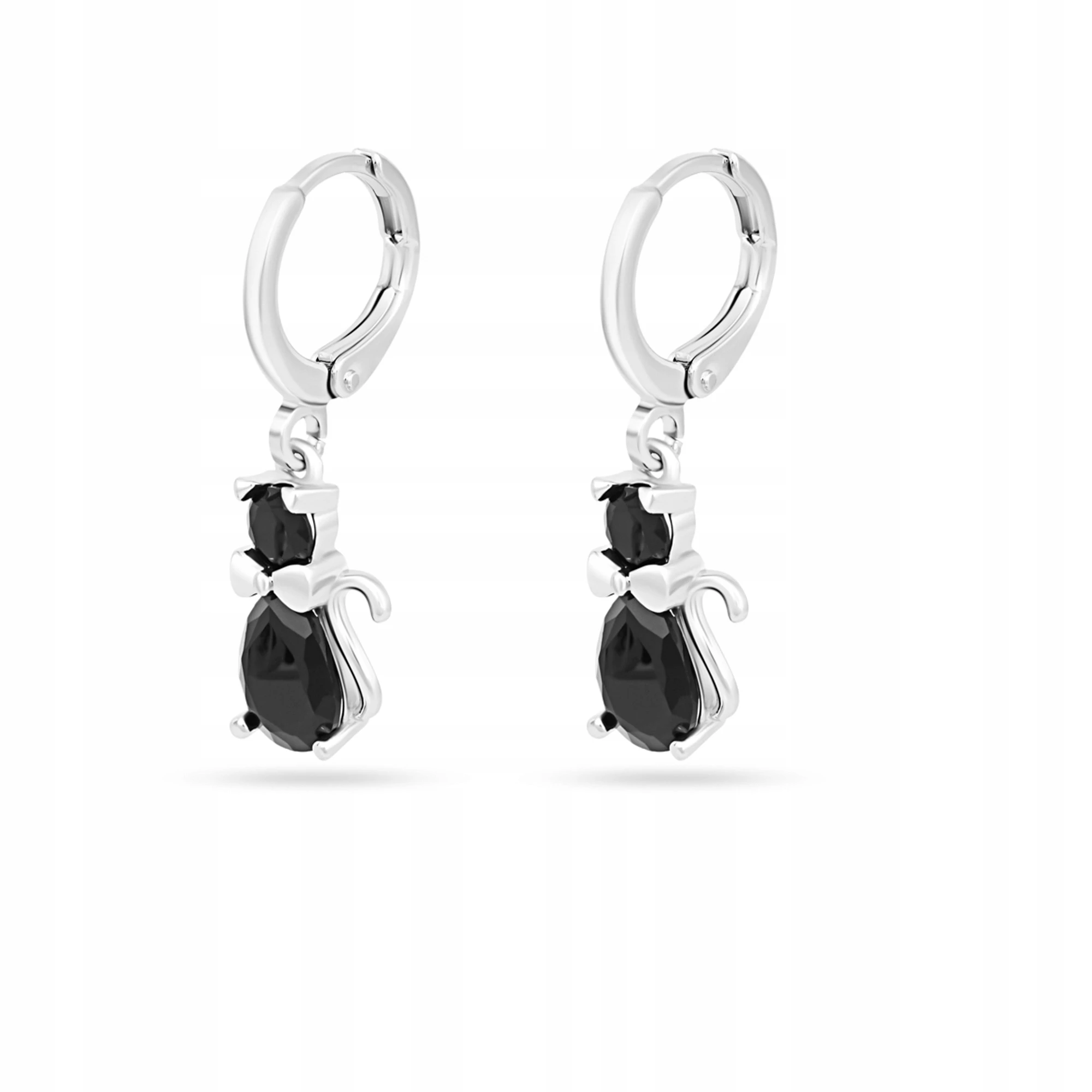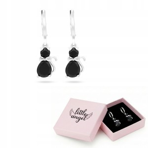 Kolczyki Wiszące KOT CZARNY Stylowe Delikatne Biżuteria Damska