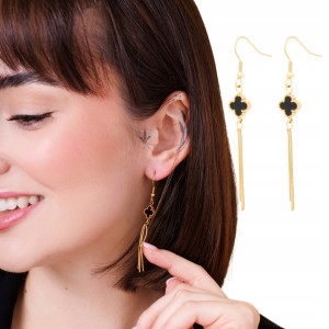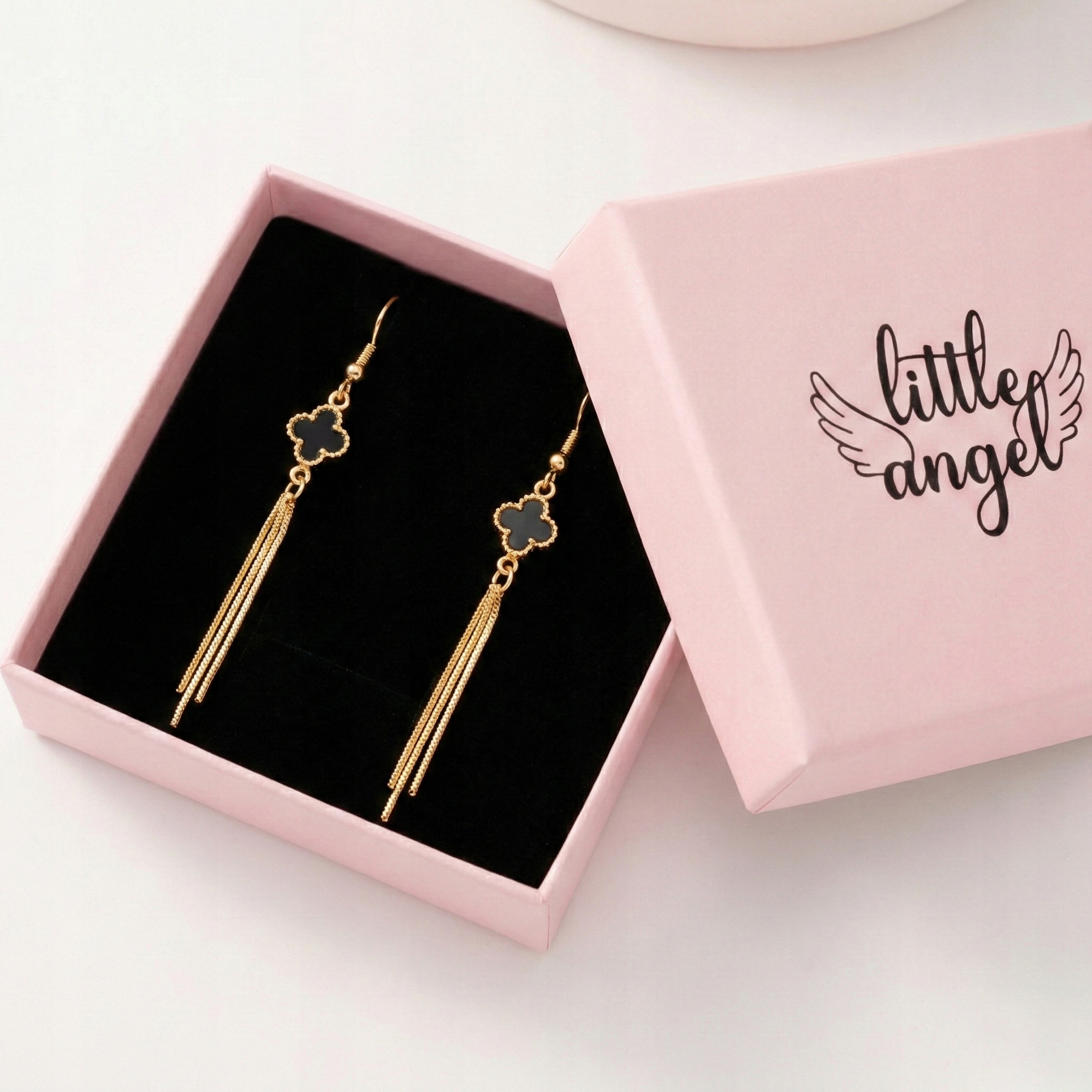 Eleganckie kolczyki damskie z motywem koniczynki to wyjątkowa biżuteria, która podkreśli kobiecy styl i doda szyku każdej stylizacji. Połączenie złotego koloru z czarną koniczynką tworzy modny i ponadczasowy design inspirowany luksusową biżuterią.