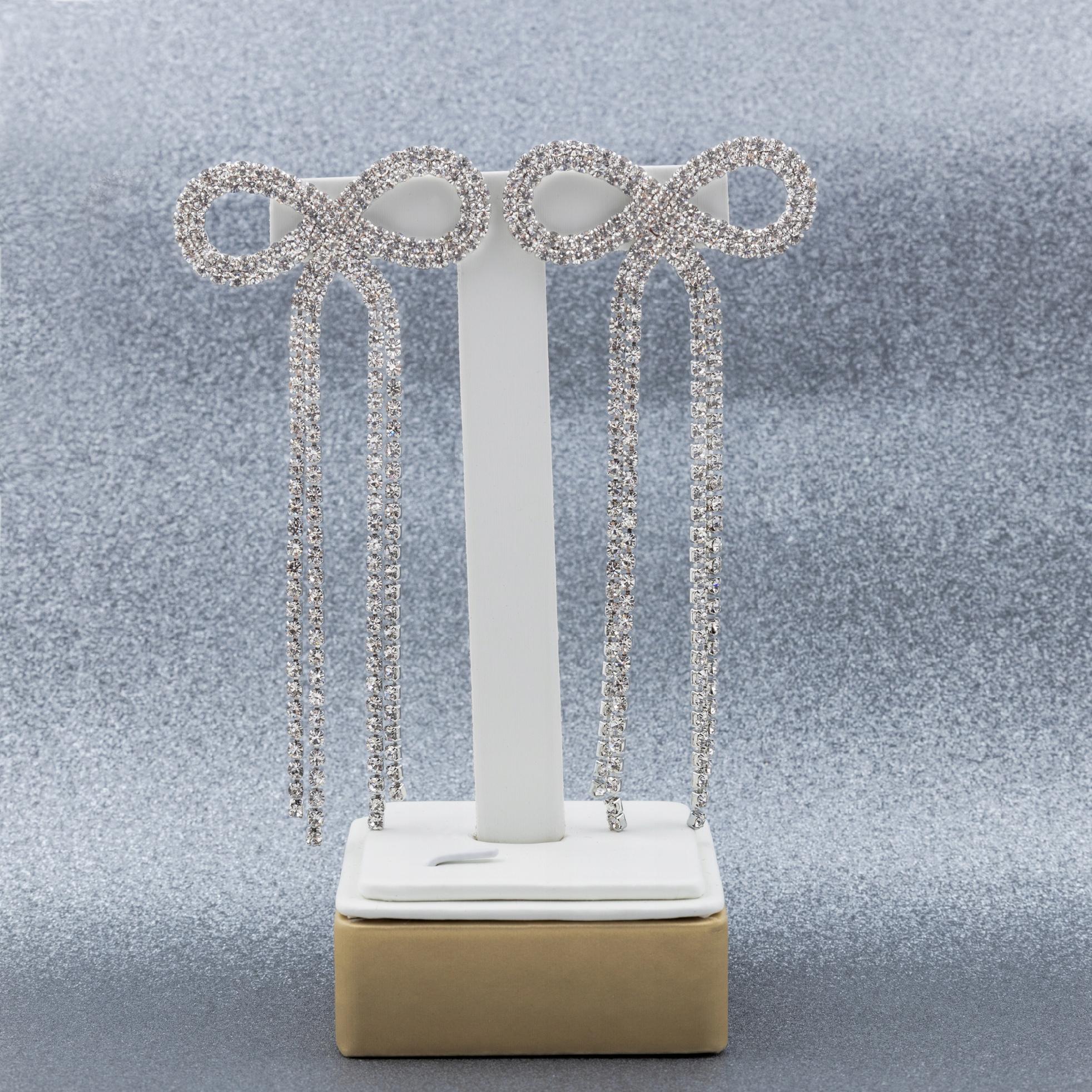 Kolczyki długie wiszące Kokardy z cyrkoniami Srebrne