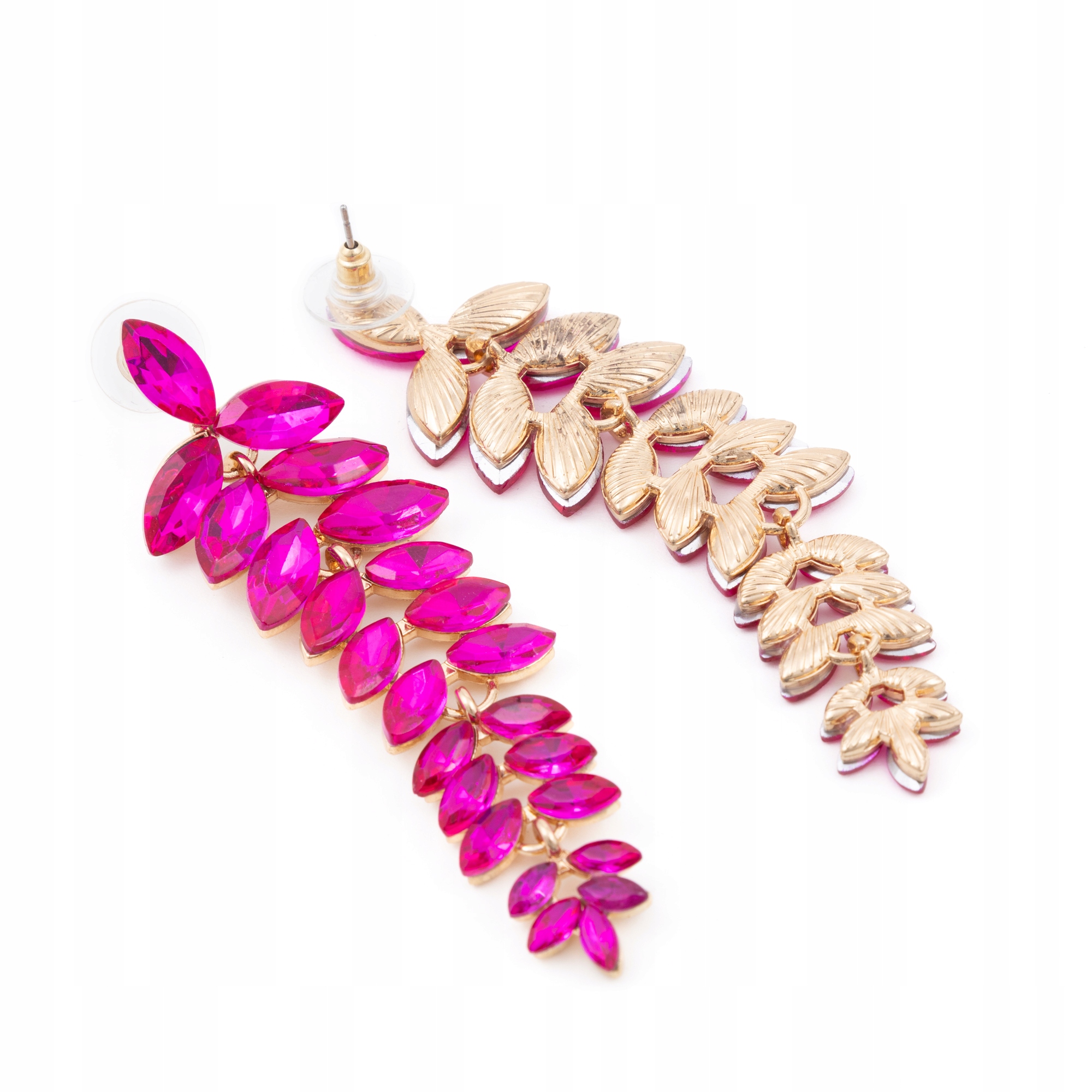 Kolczyki długie wiszące eleganckie różowe z cyrkoniami
