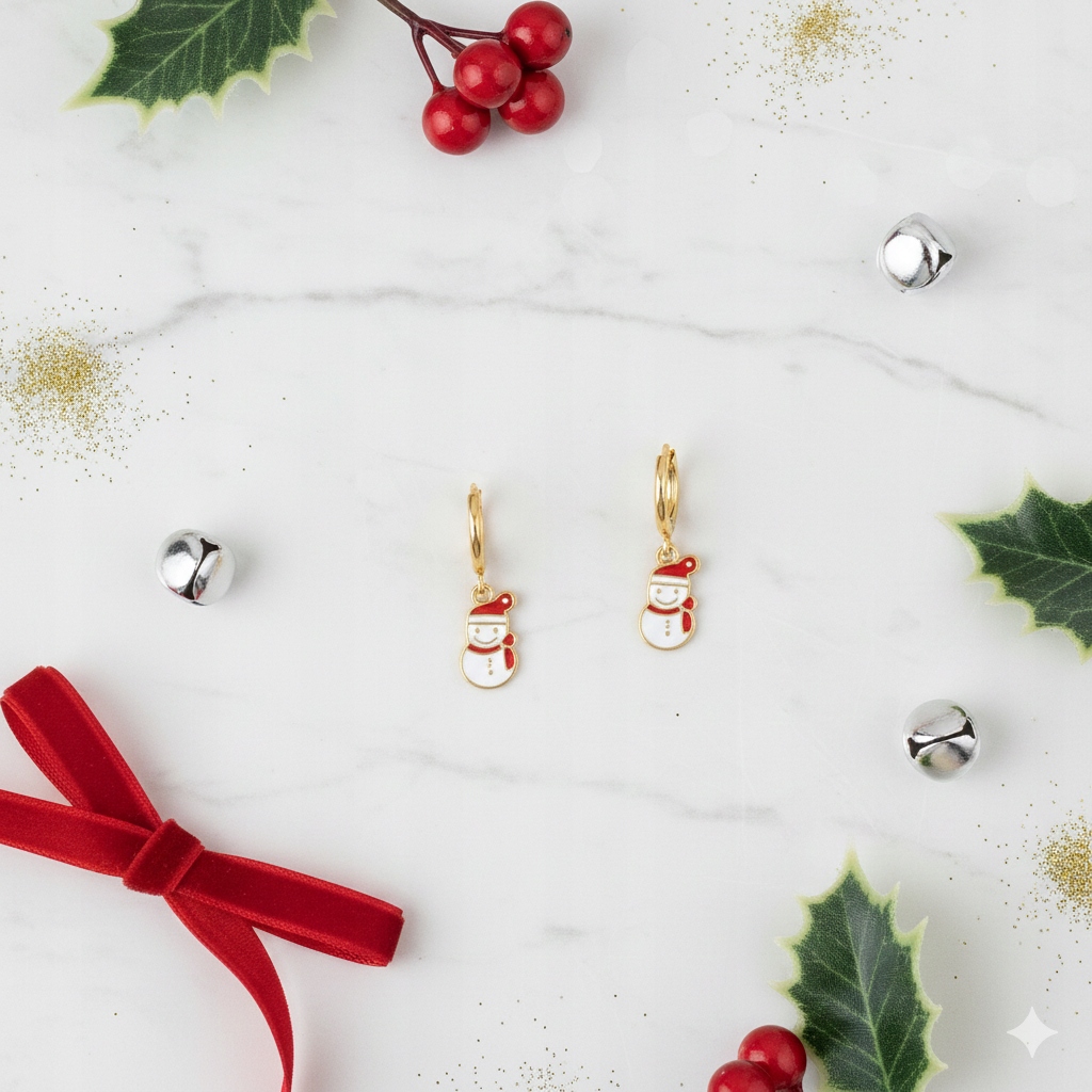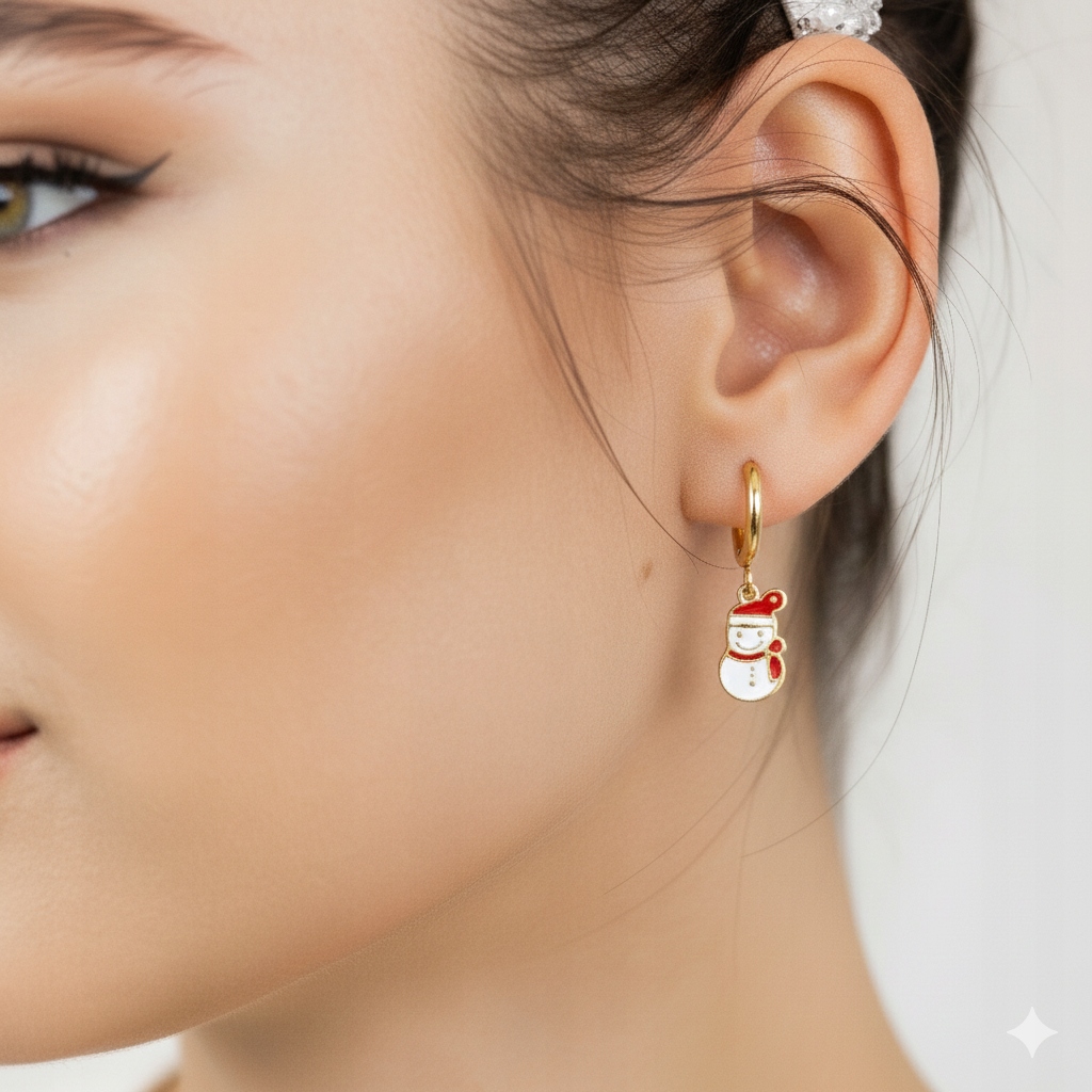 Urocze kolczyki w świątecznym klimacie z motywem bałwanka, które pięknie dopełnią zimowe stylizacje. Delikatne kółka w złotym kolorze oraz kolorowa zawieszka nadają im lekkości i dziewczęcego uroku.