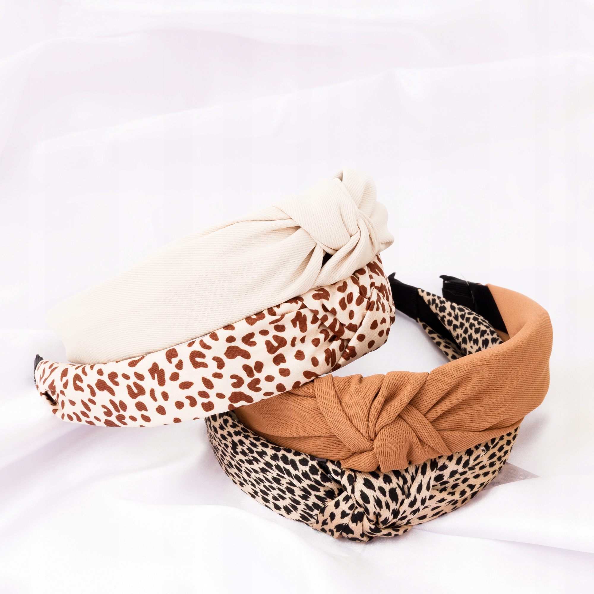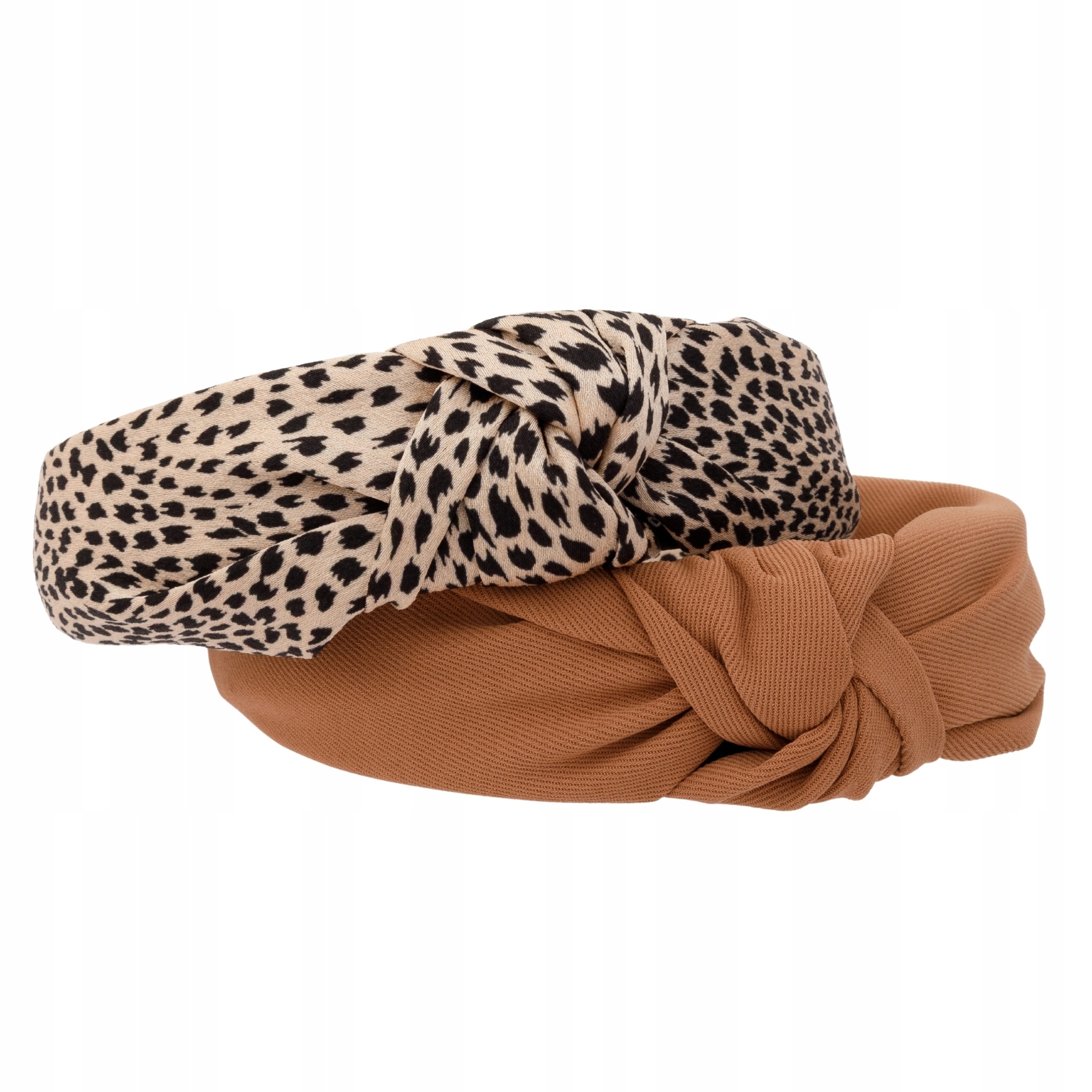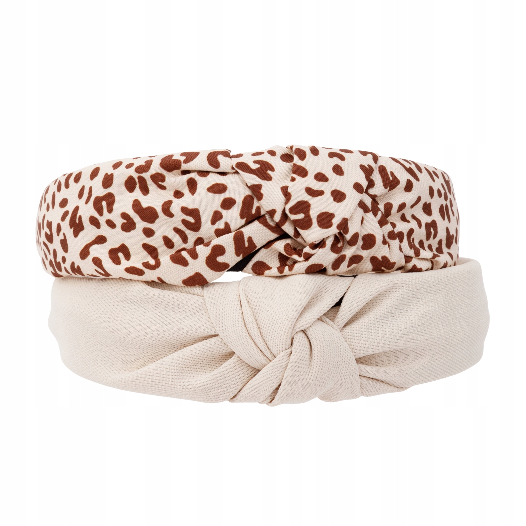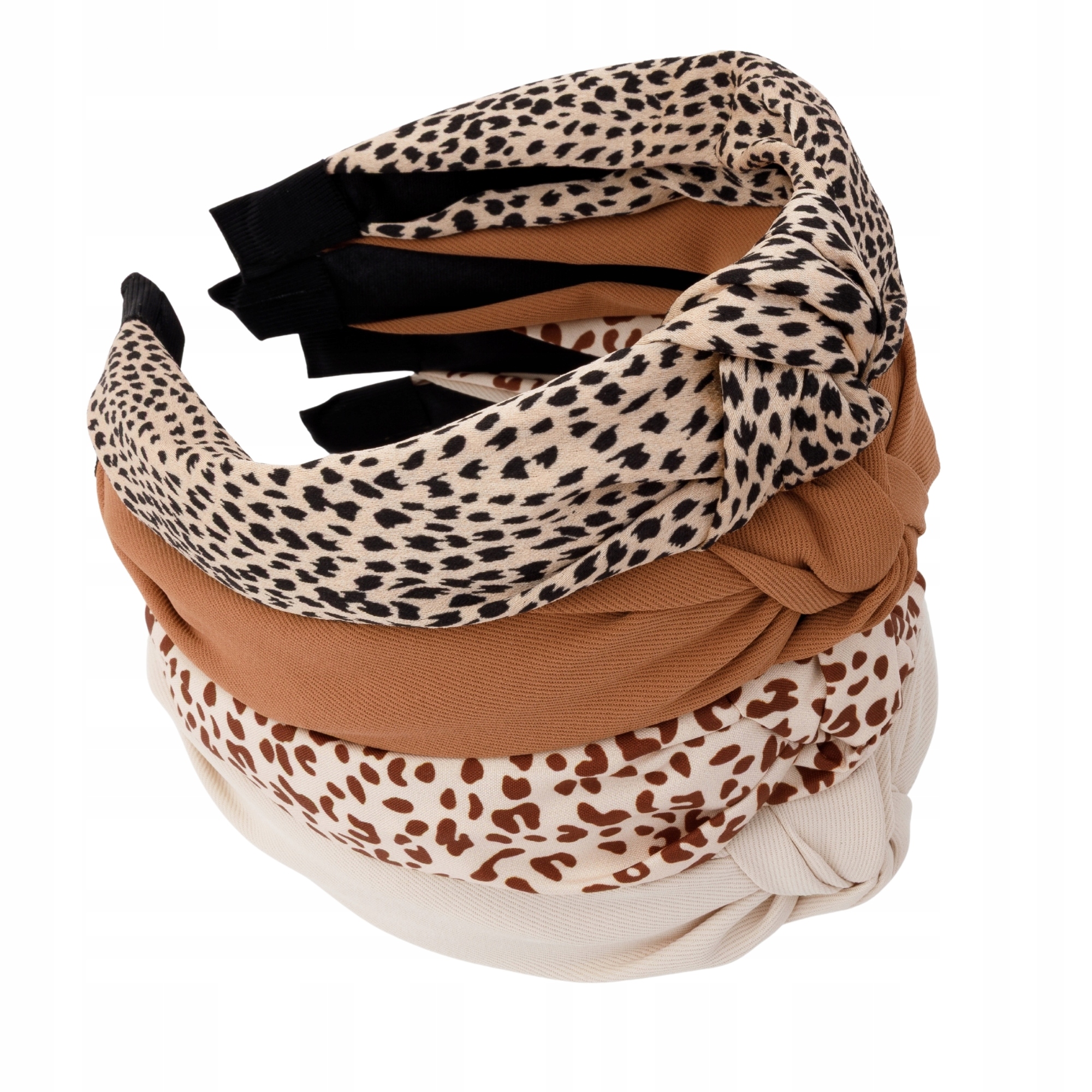 Komplet 4 opasek na włosy damskich z supełkiem panterka i gładkie