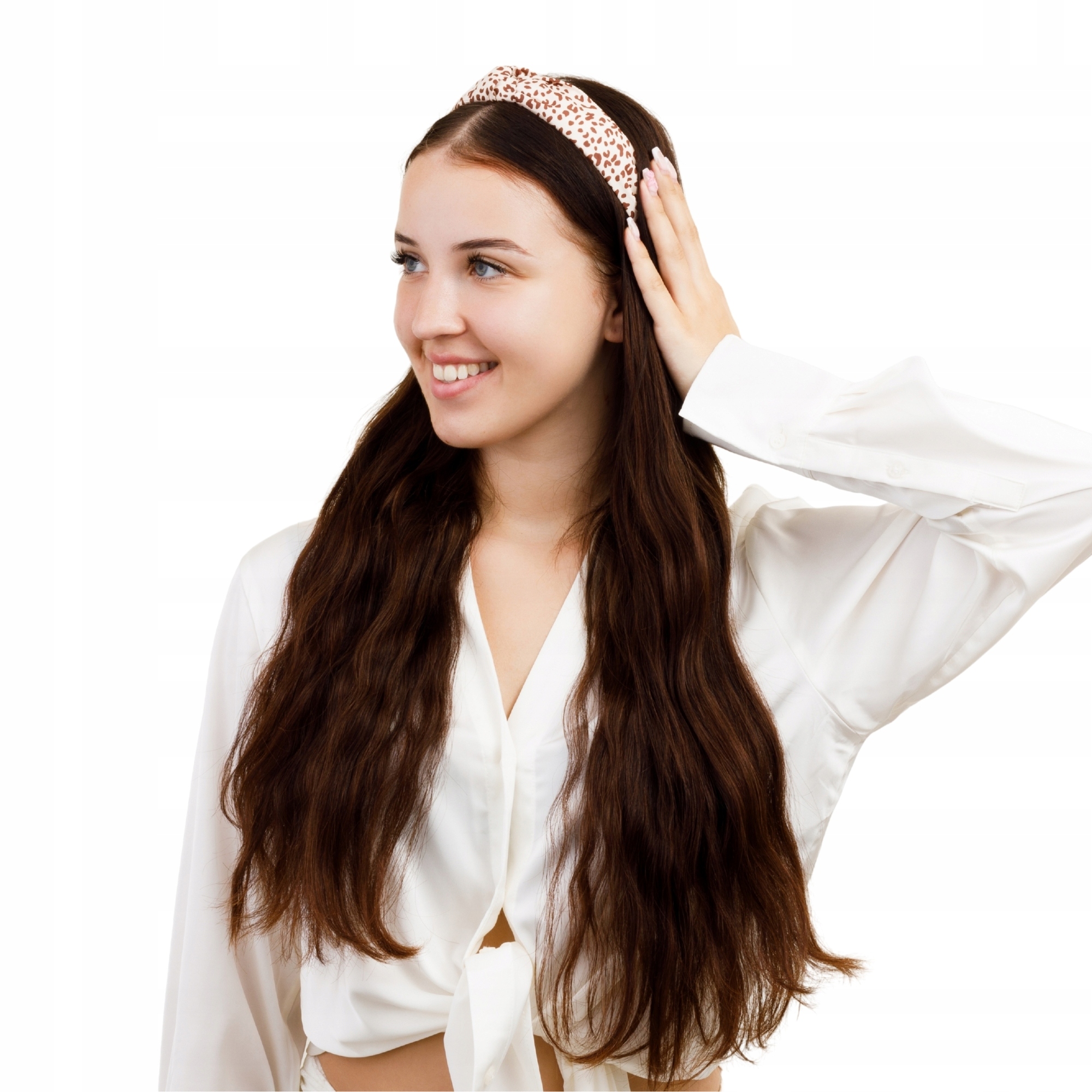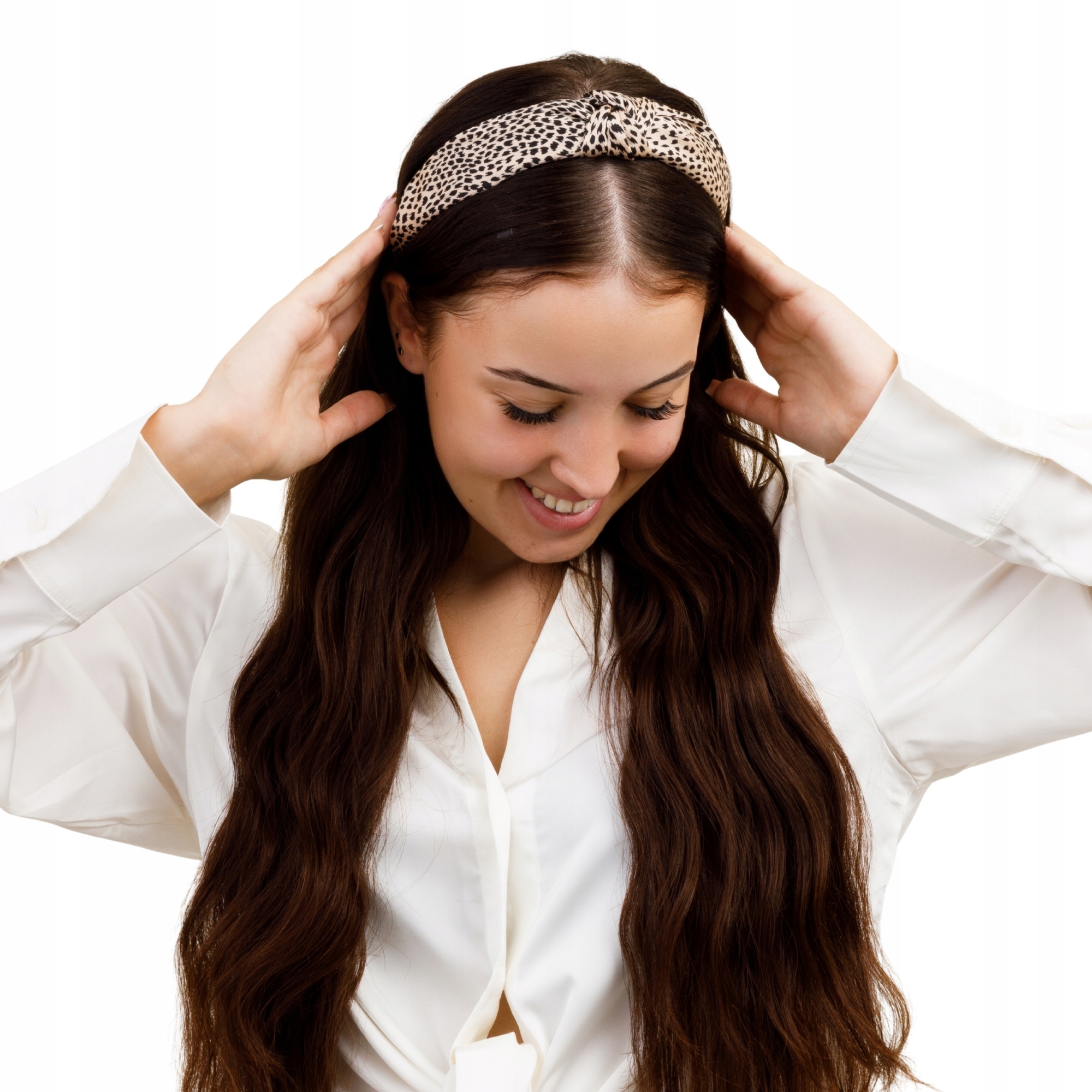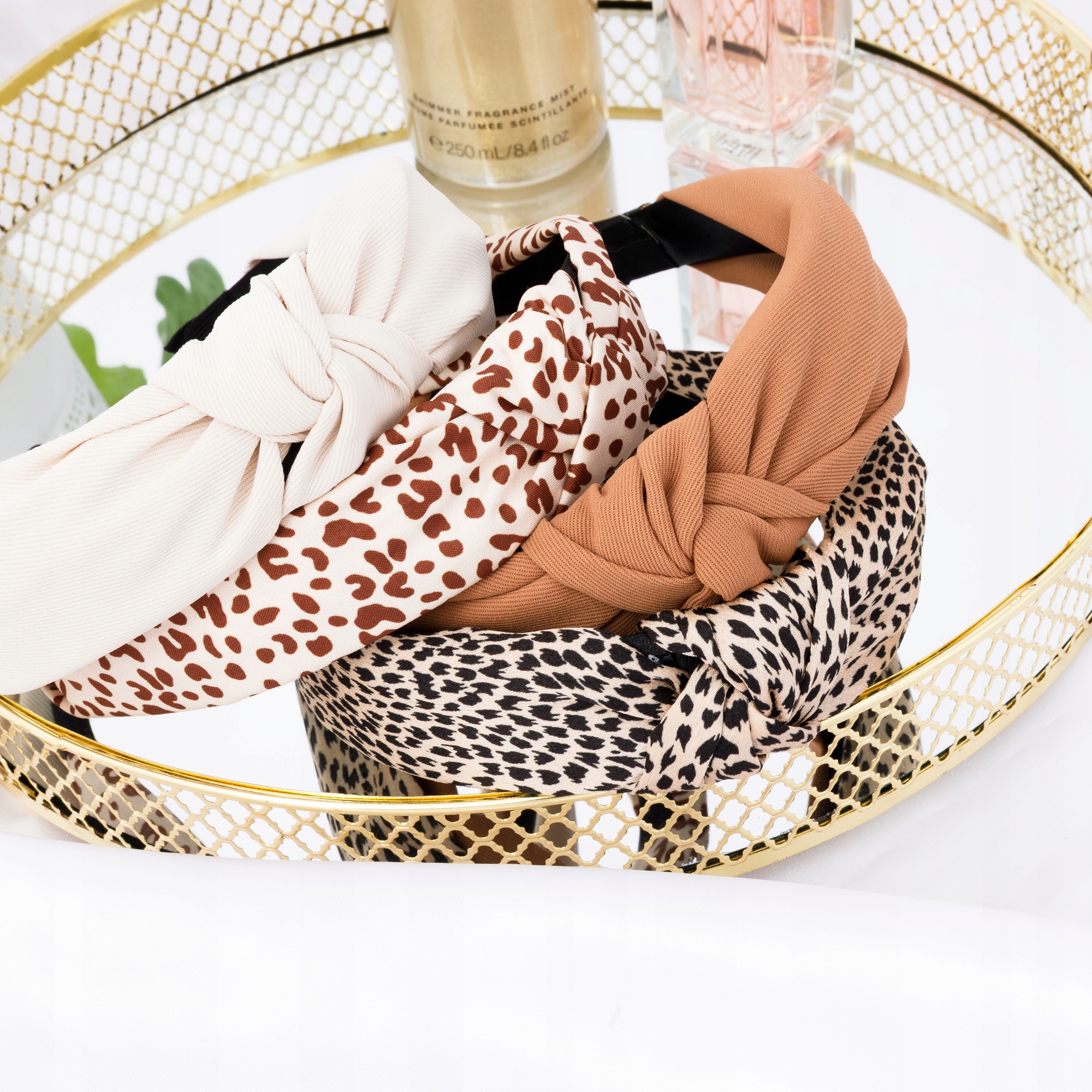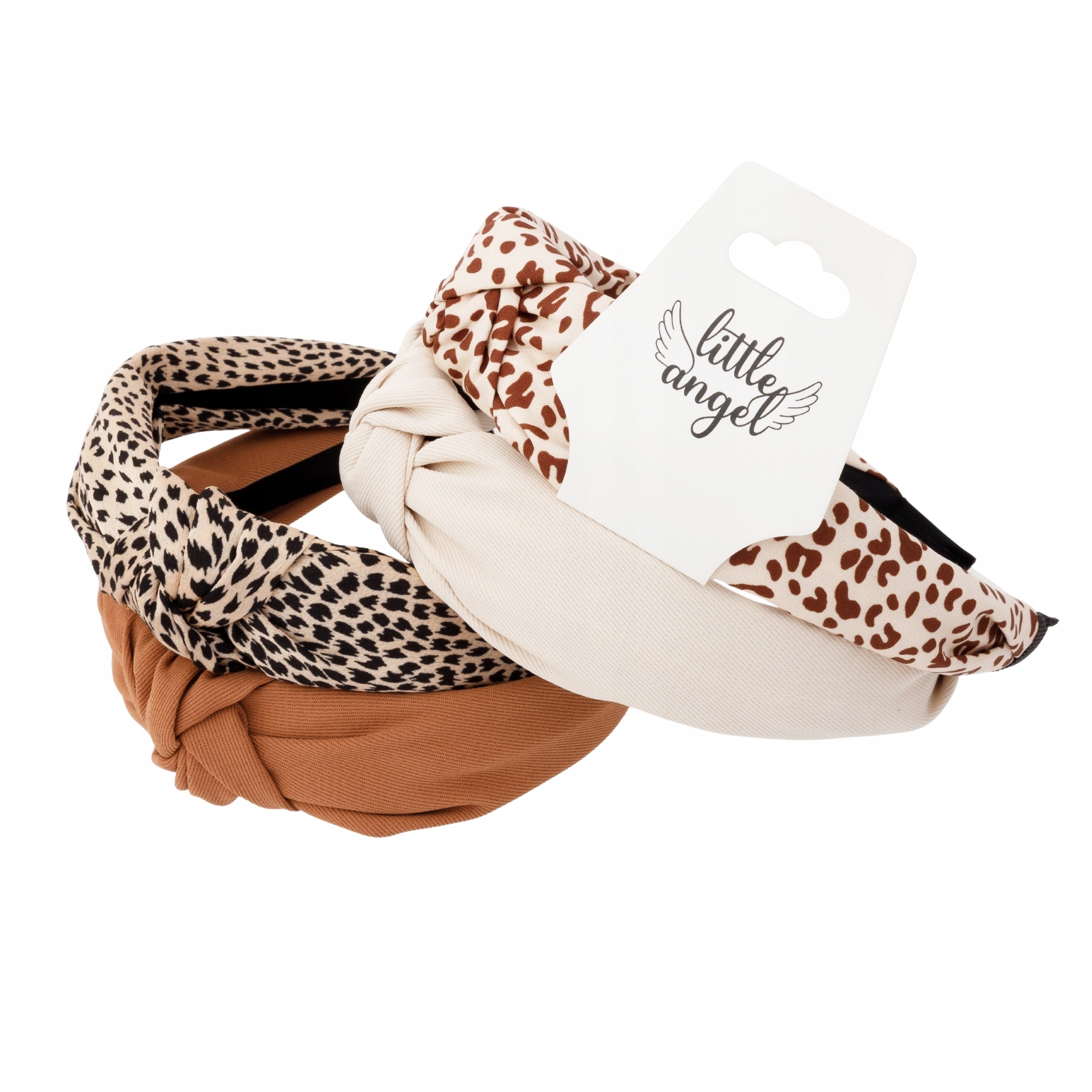 Komplet 4 opasek na włosy damskich z supełkiem panterka i gładkie