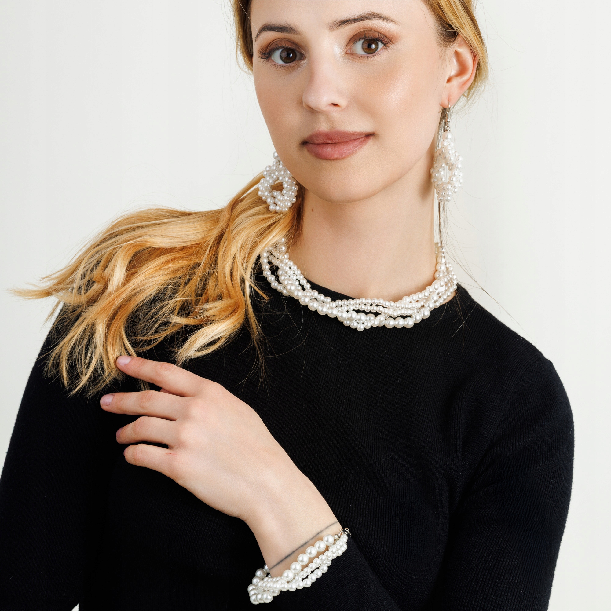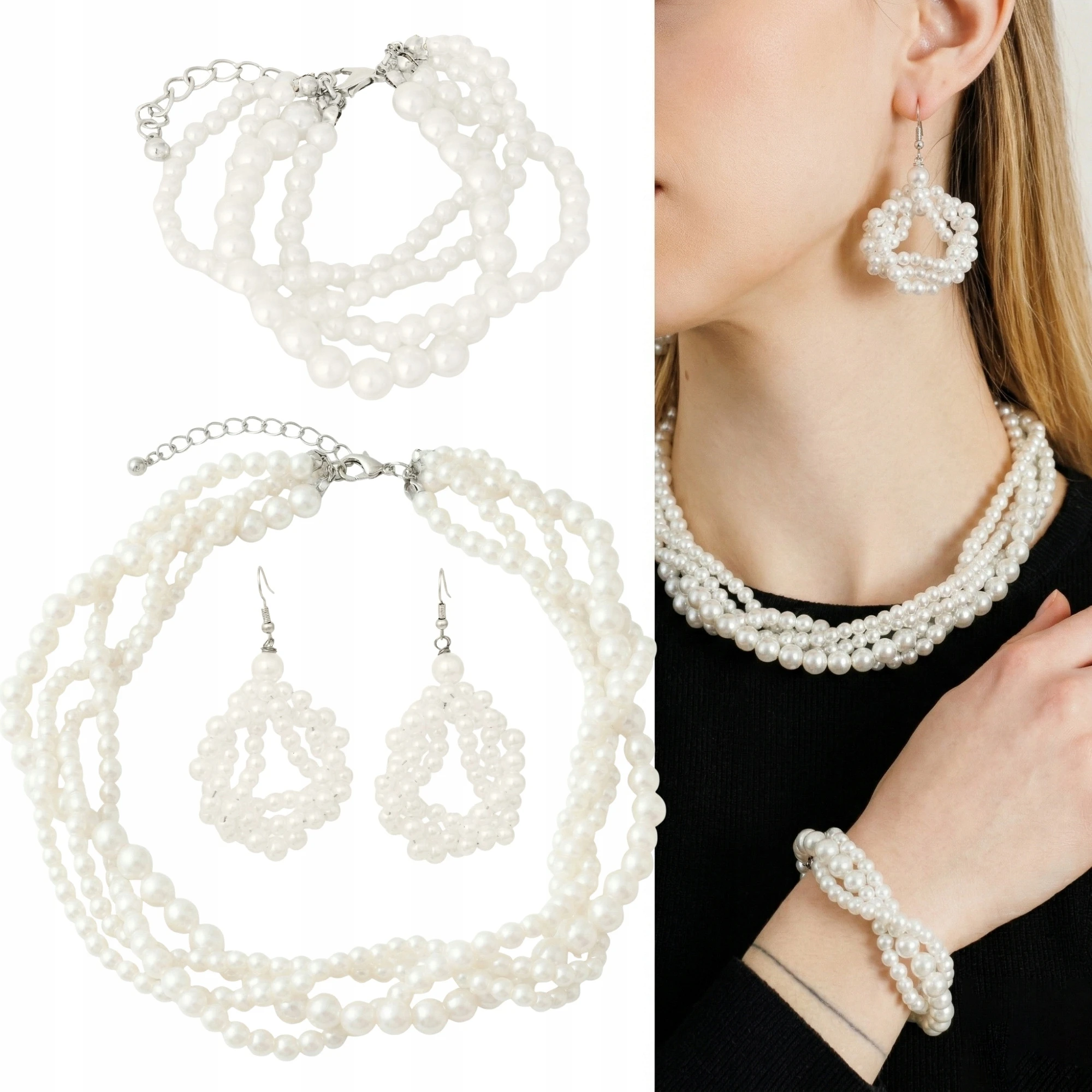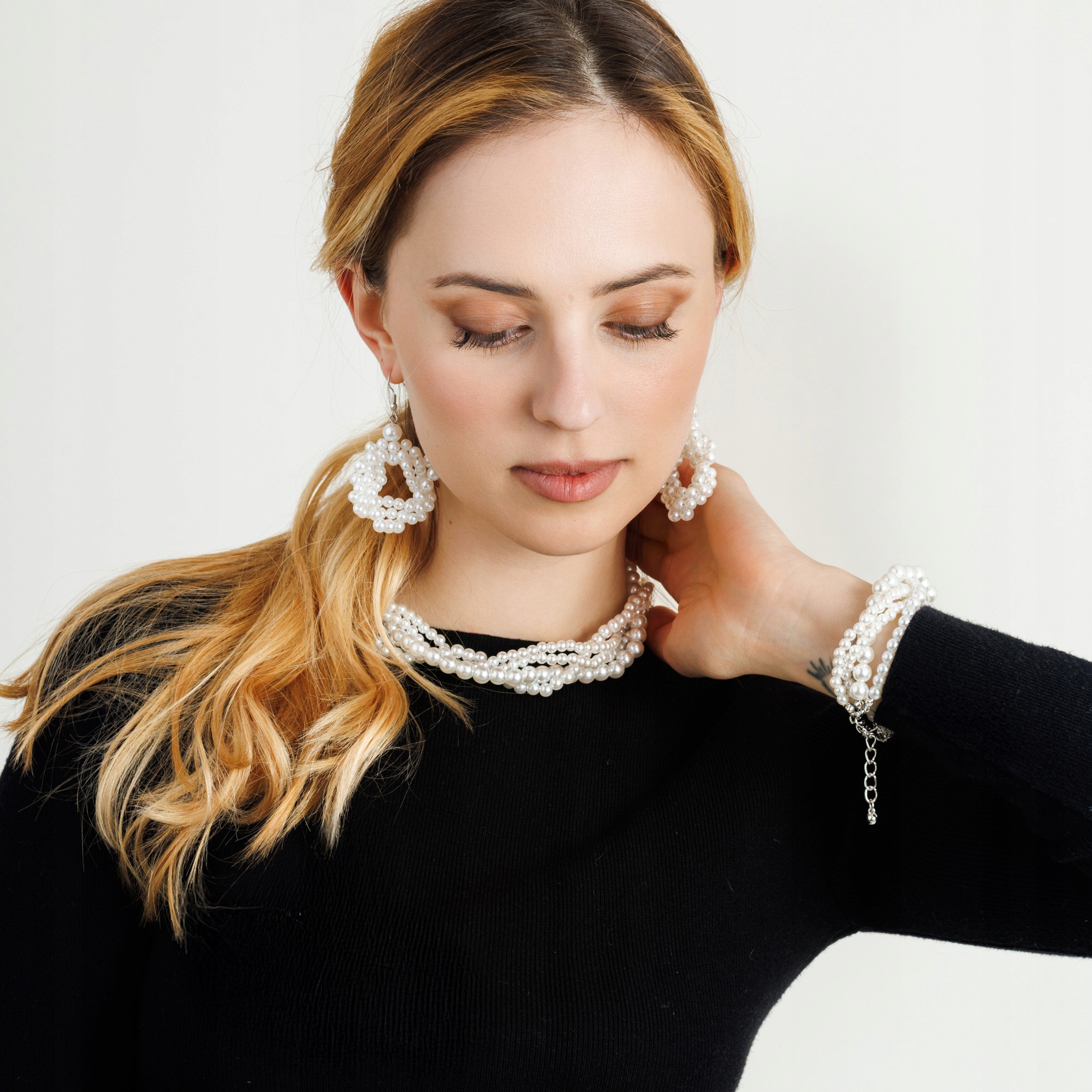 Komplet biżuterii z koralików naszyjnik choker bransoletka kolczyki klasyk
