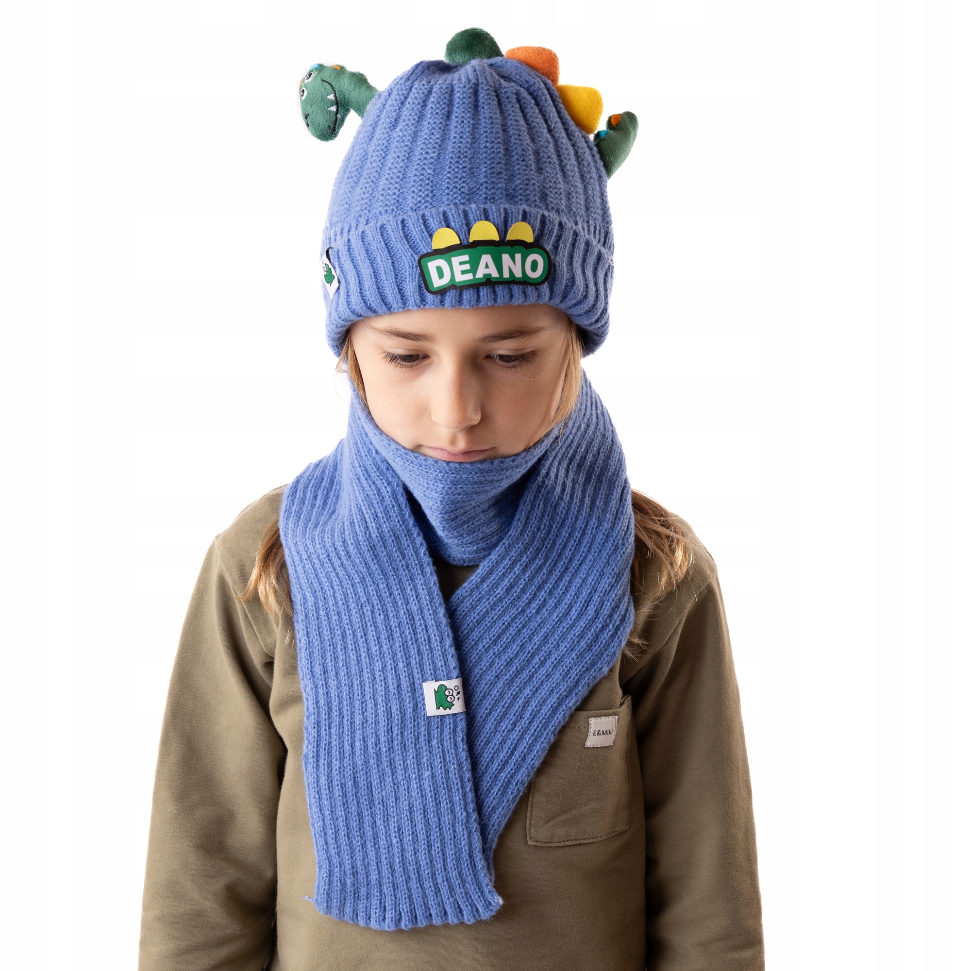 Rozgrzewający zestaw na zimę, który pokocha każdy mały fan dinozaurów! ? Zimowy komplet Little Angel DINO to połączenie wyjątkowego designu, miękkości i wygody. Czapka i szalik wykonane zostały z ciepłej, elastycznej dzianiny akrylowej, która zapewnia komfort nawet w najchłodniejsze dni.