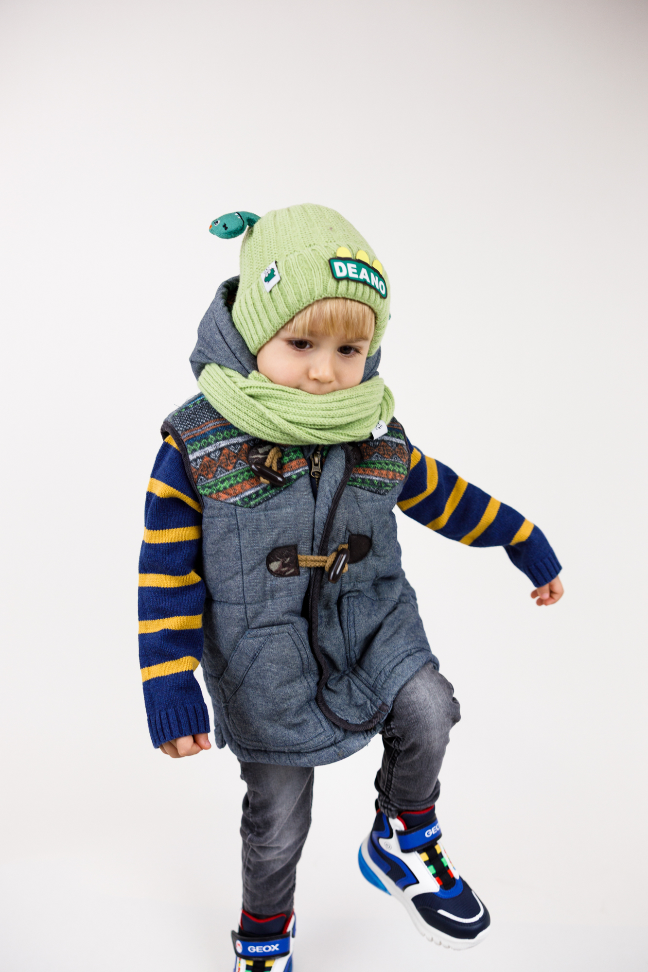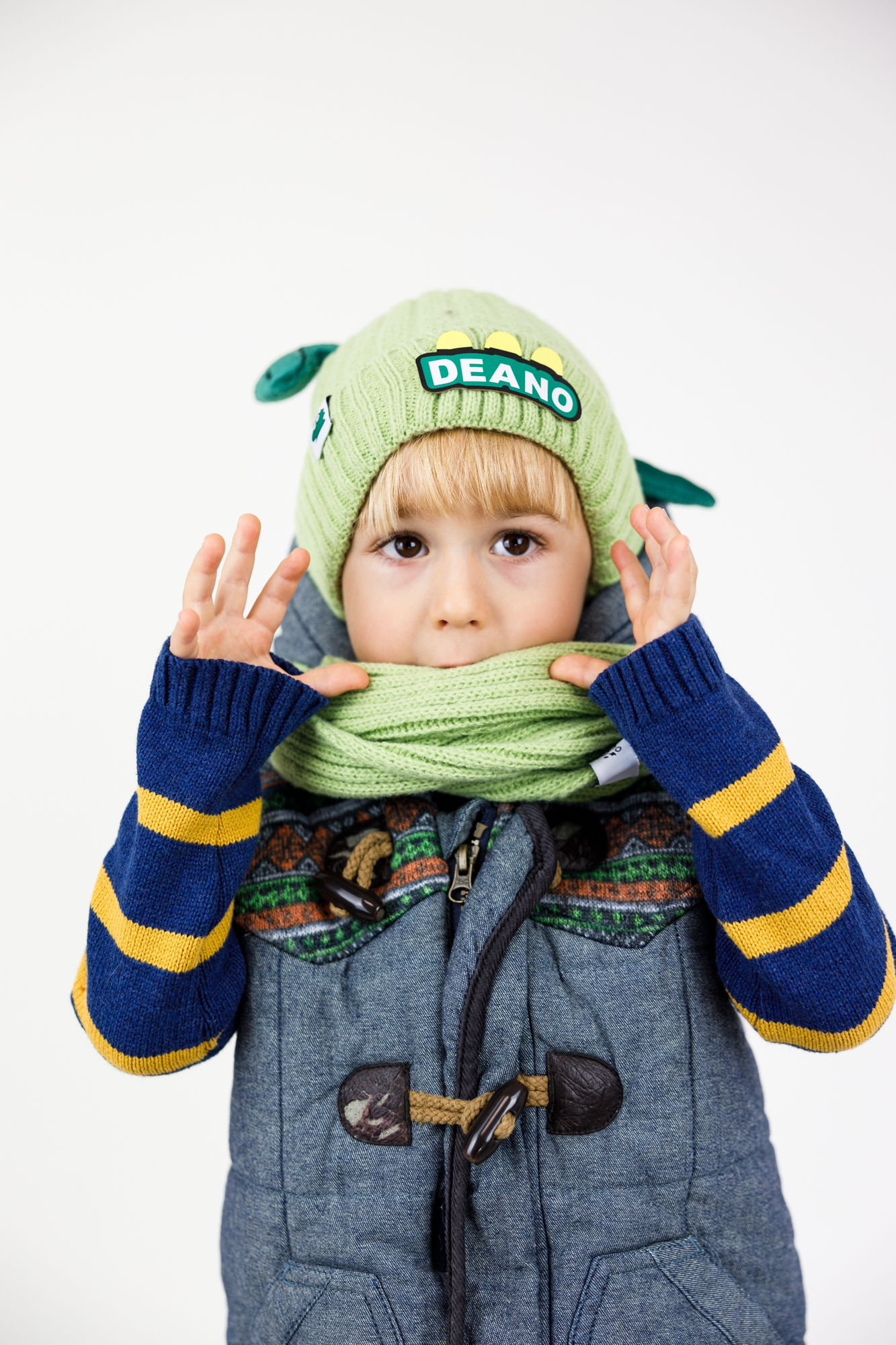 Uroczy motyw dinozaura z naszywką “DEANO” i miękkimi elementami 3D nadaje zestawowi niepowtarzalny, zabawny charakter. Czapka doskonale dopasowuje się do głowy, nie uciska i chroni uszy przed wiatrem.