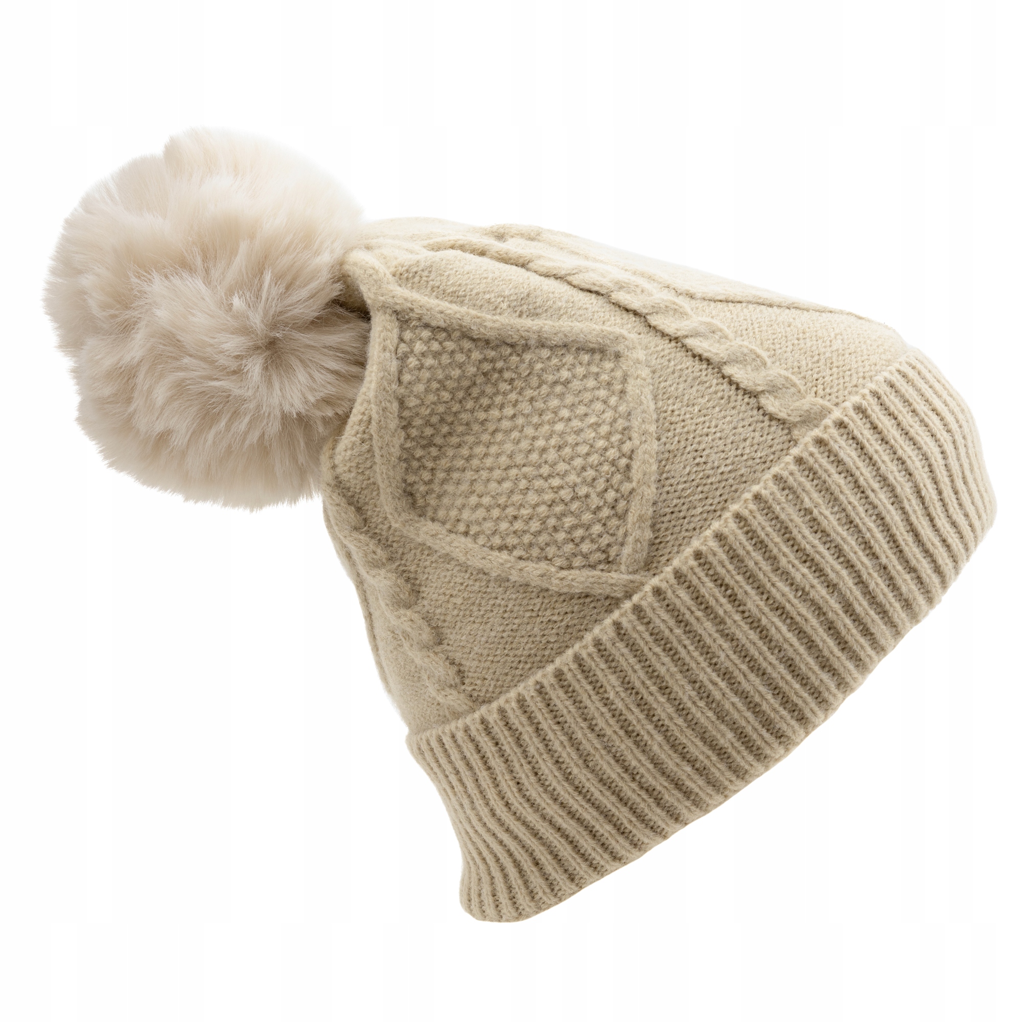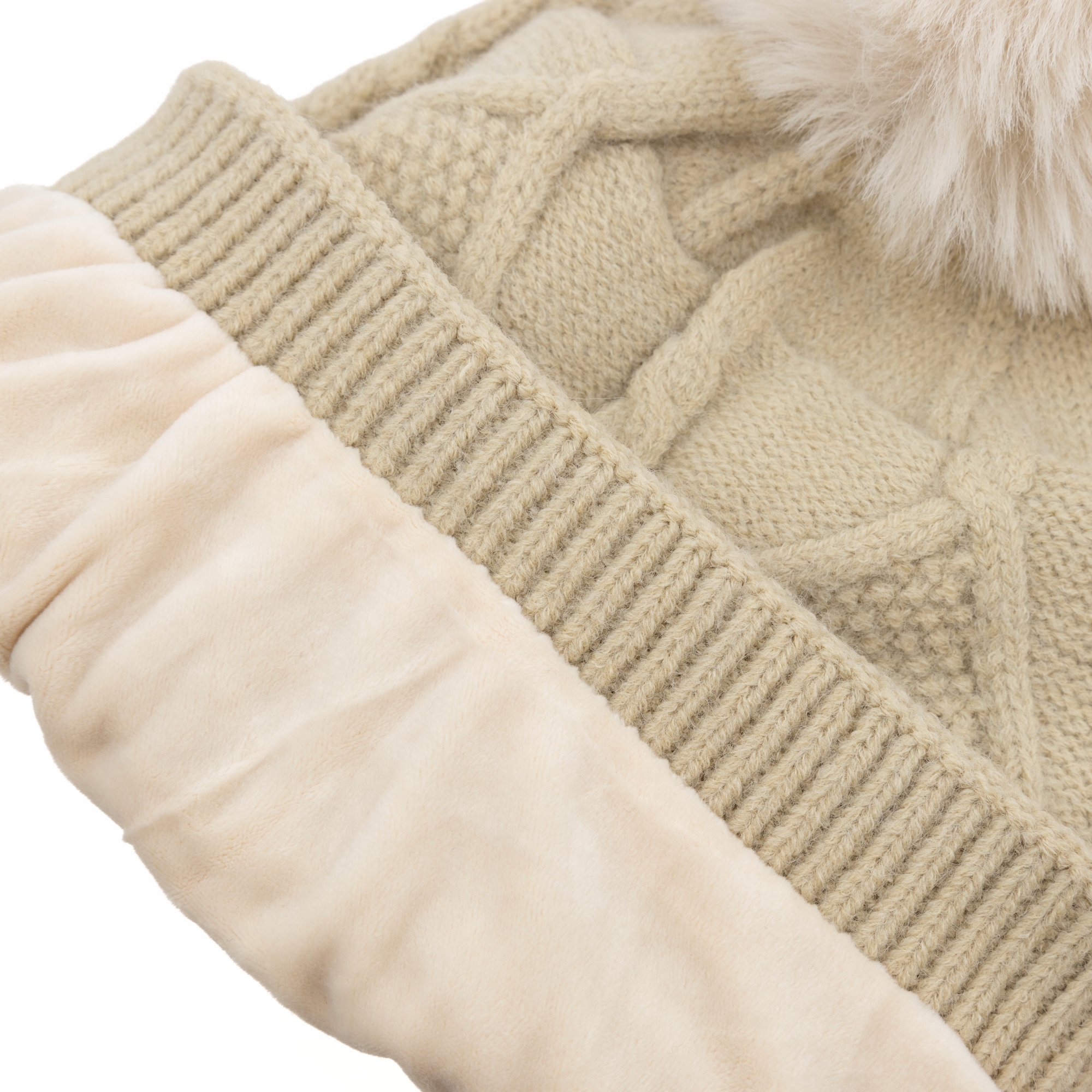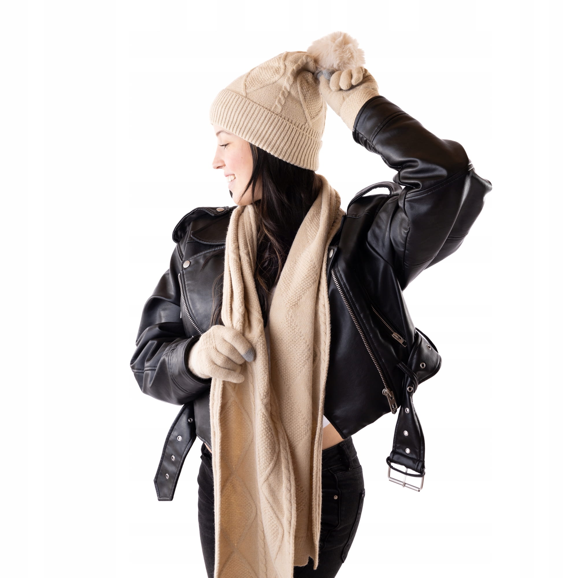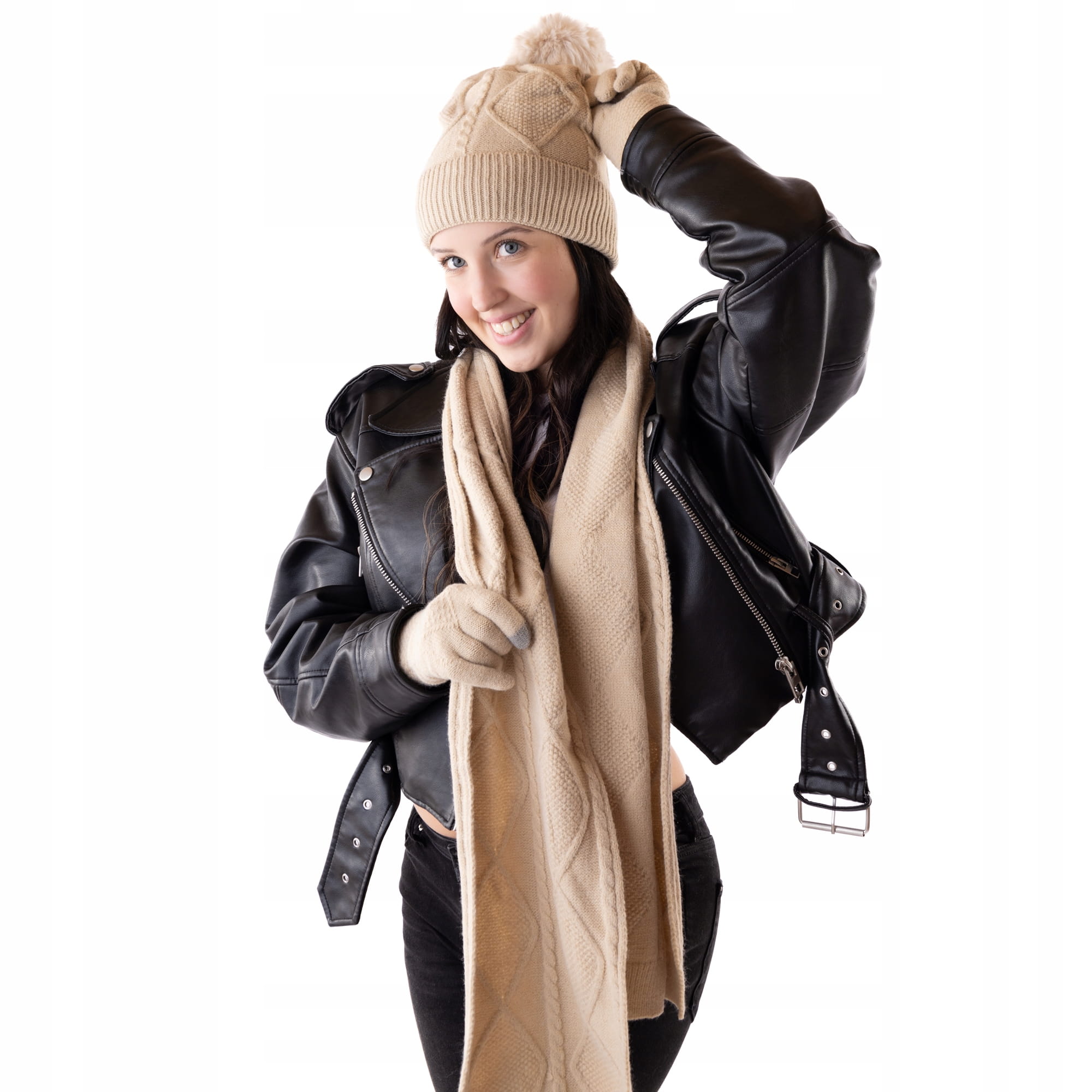 Komplet zimowy ocieplany Damski czapka szalik rękawiczki Beżowy