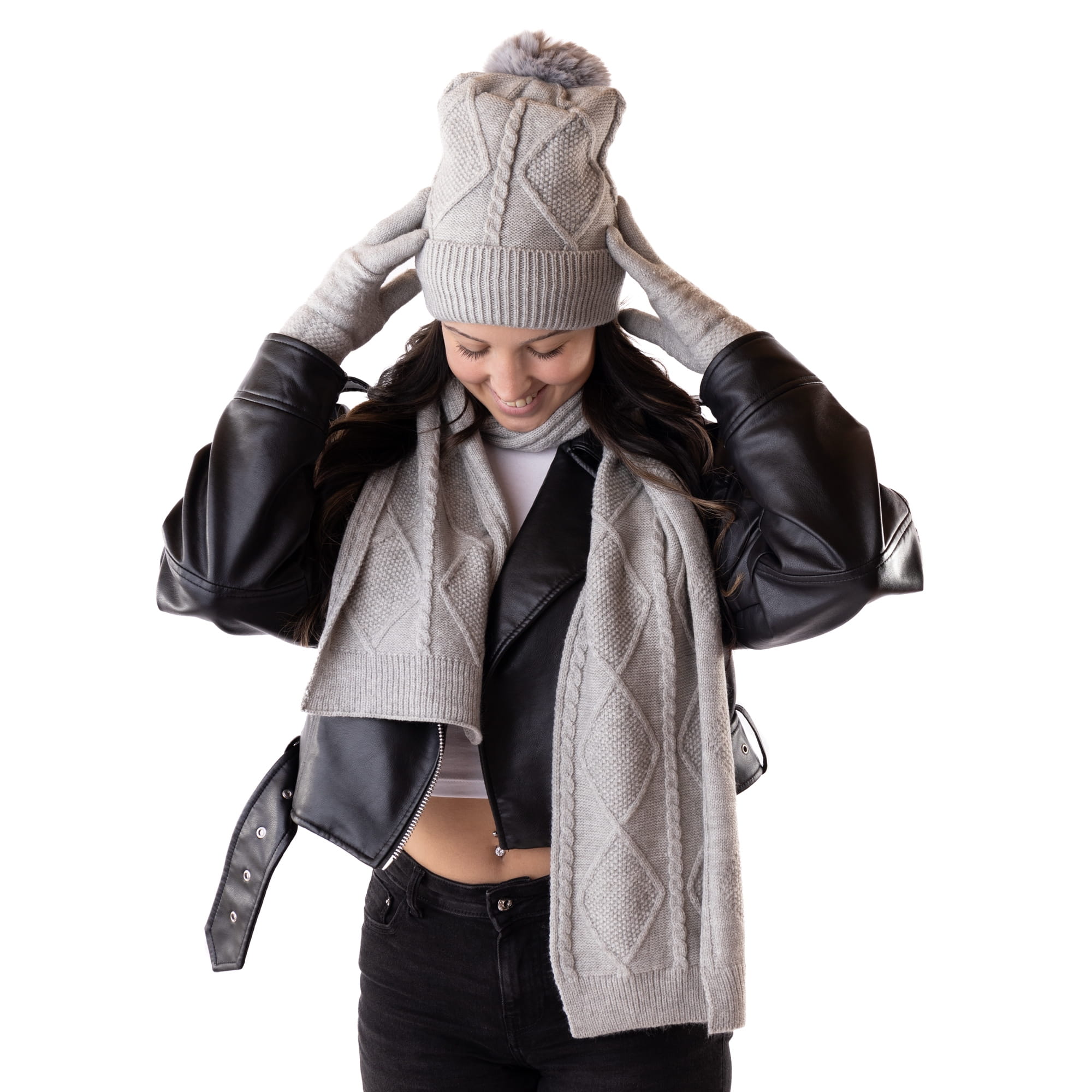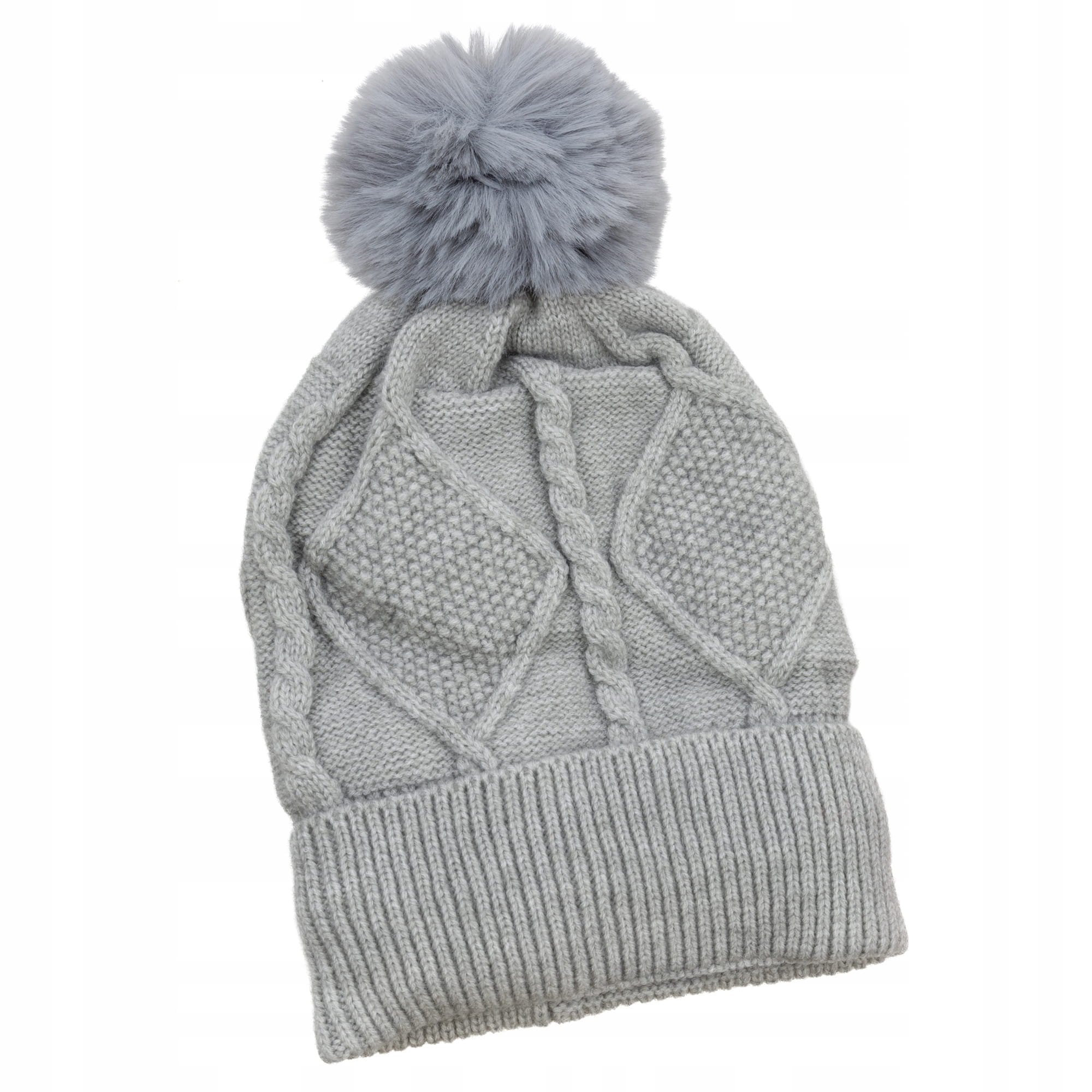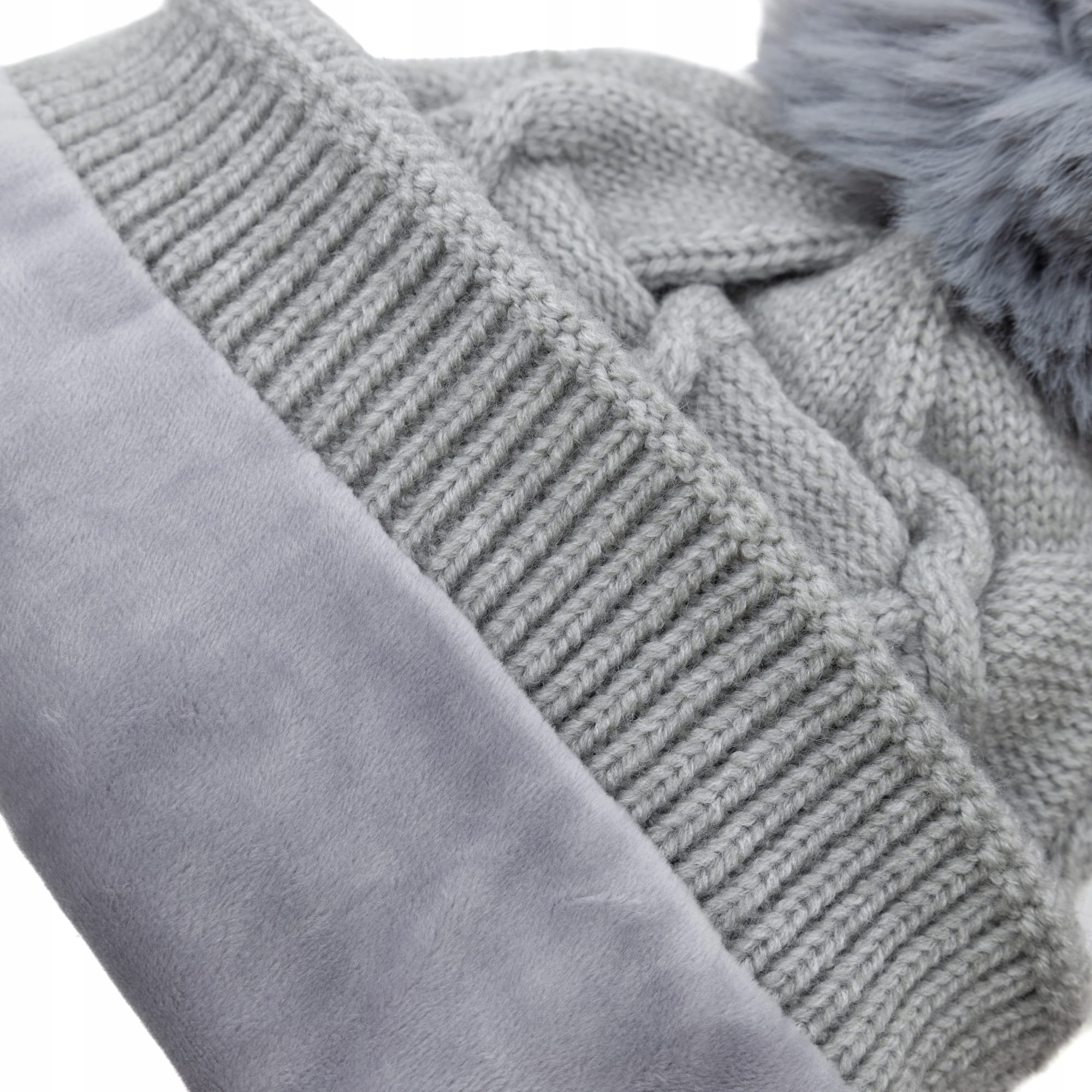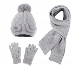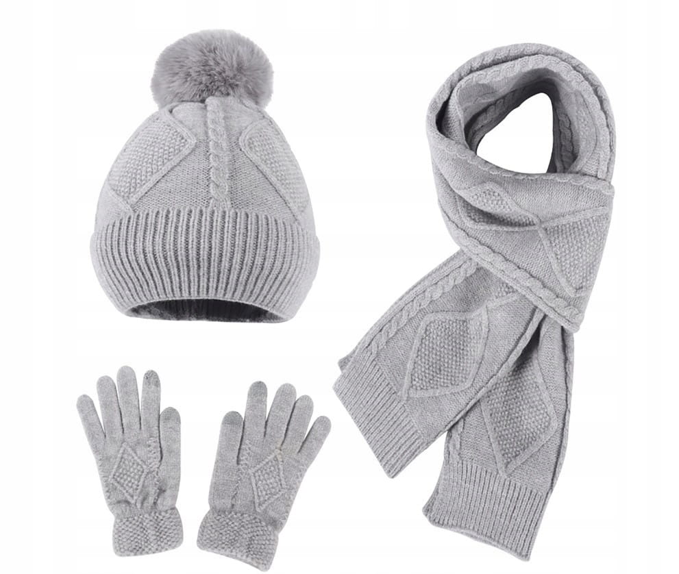 Komplet zimowy ocieplany Damski czapka szalik rękawiczki Szary