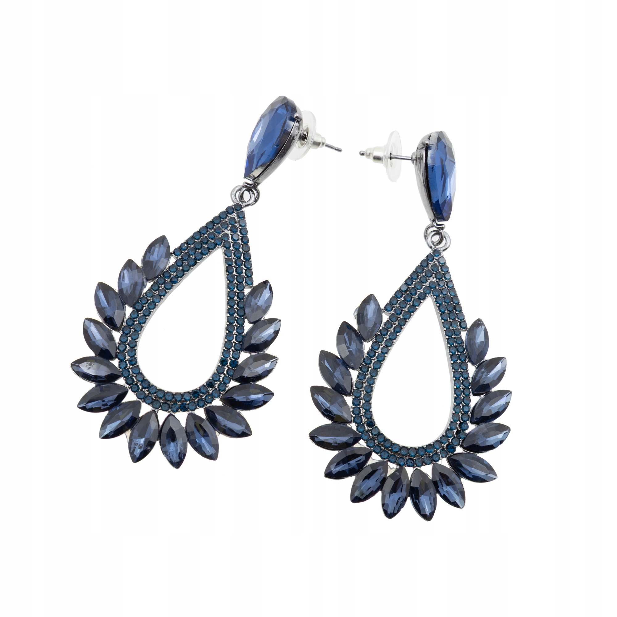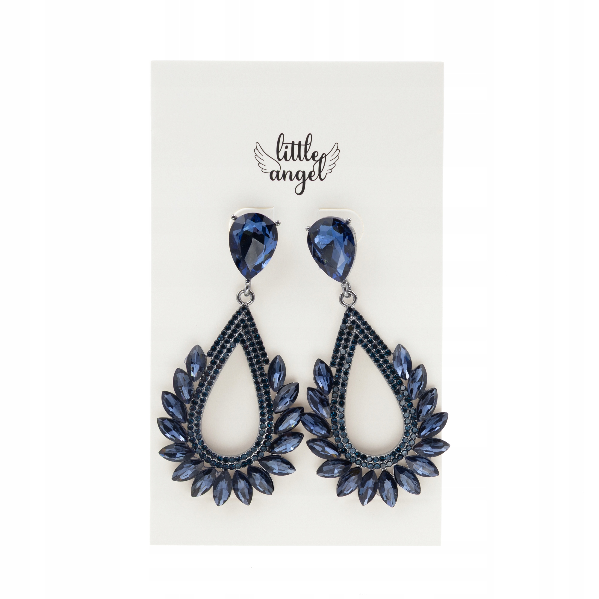 Little Angel KOLCZYKI wieczorowe Granatowe z kryształkami Łezka Wiszące