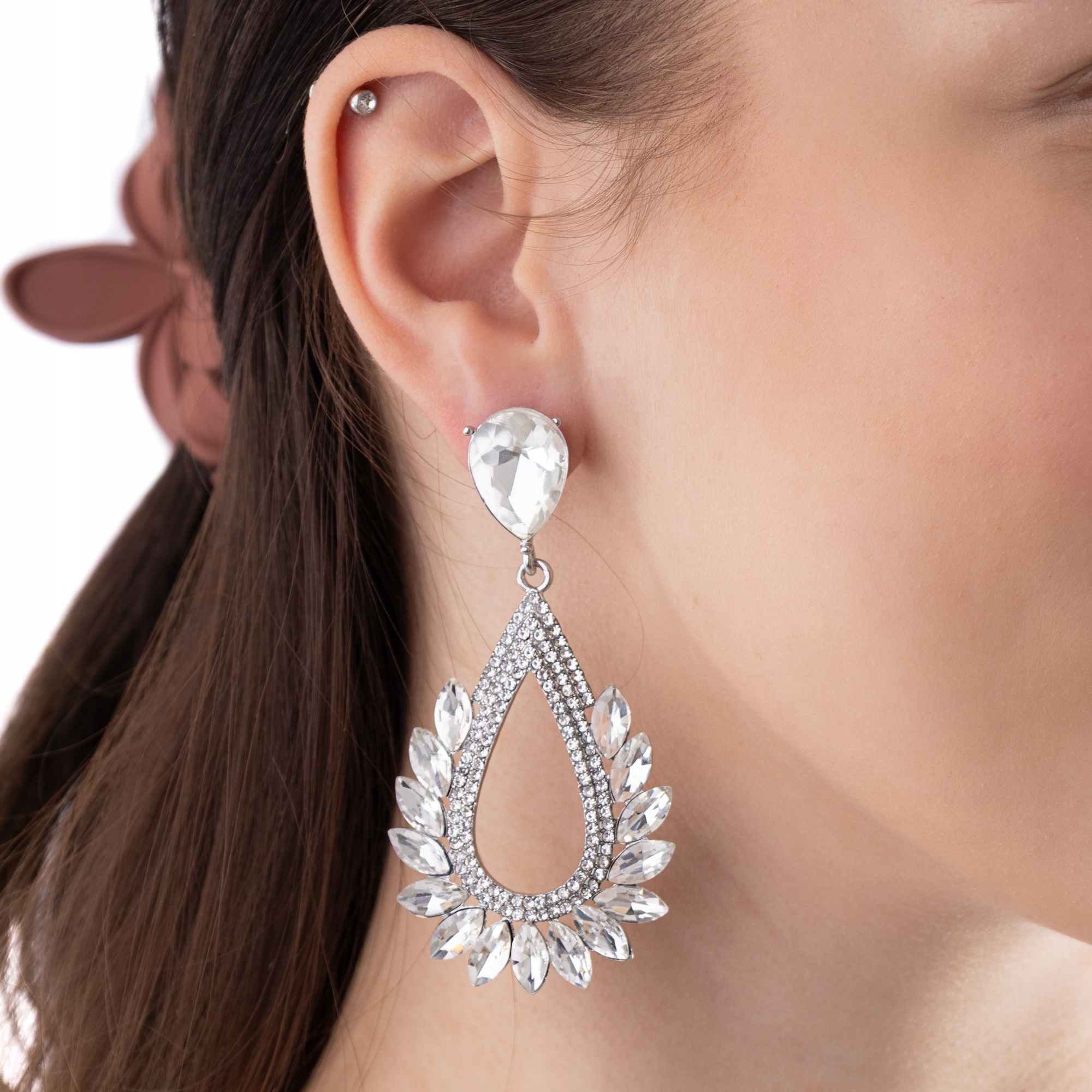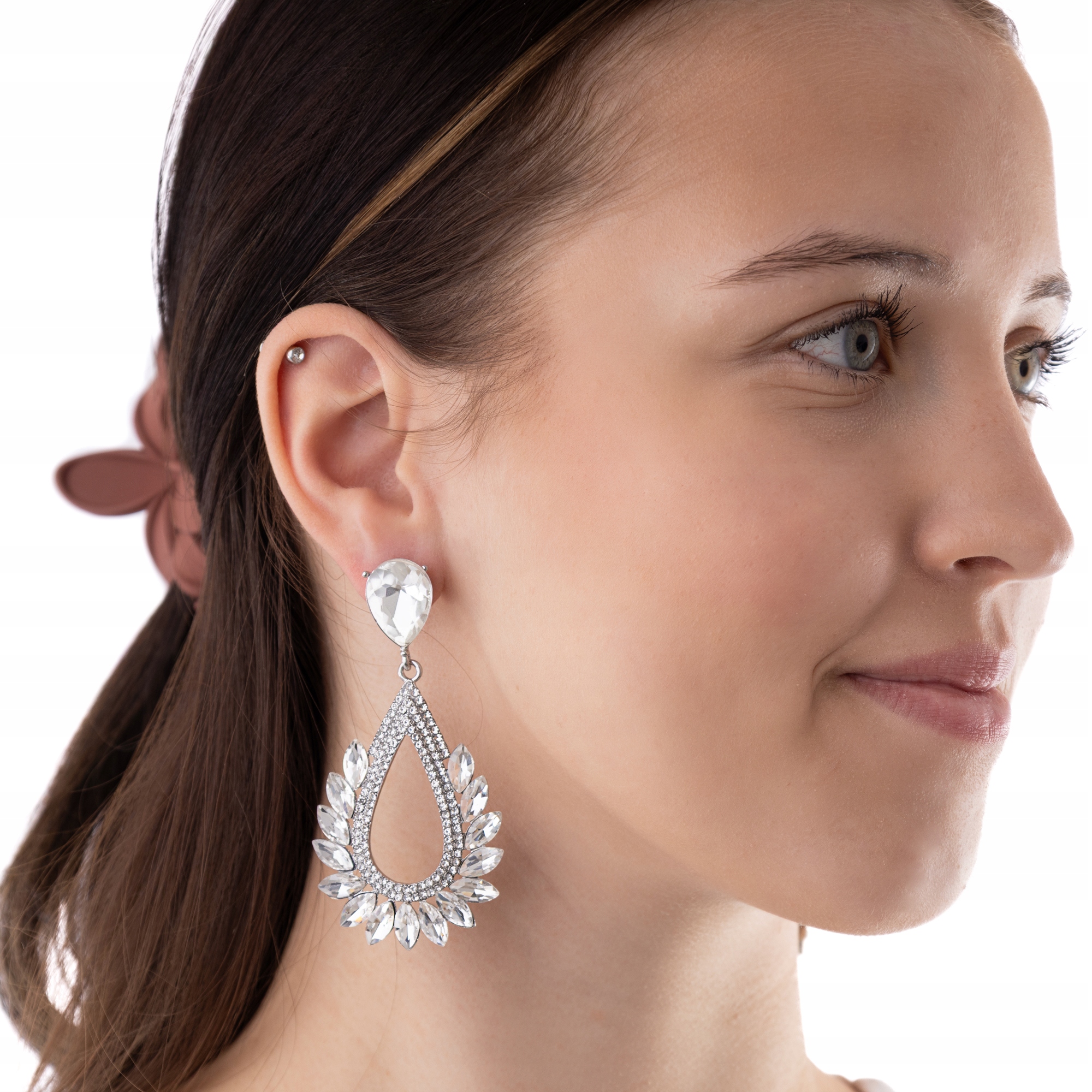Zachwycające kolczyki o klasycznym kształcie łezki, zdobione przejrzystymi kryształkami, które pięknie odbijają światło. Elegancki i ponadczasowy design idealnie dopełni stylizację na wesele, sylwestra, bankiet lub bal. Błyszcząca forma i subtelny połysk sprawiają, że kolczyki przyciągają wzrok i dodają blasku każdej kobiecie.