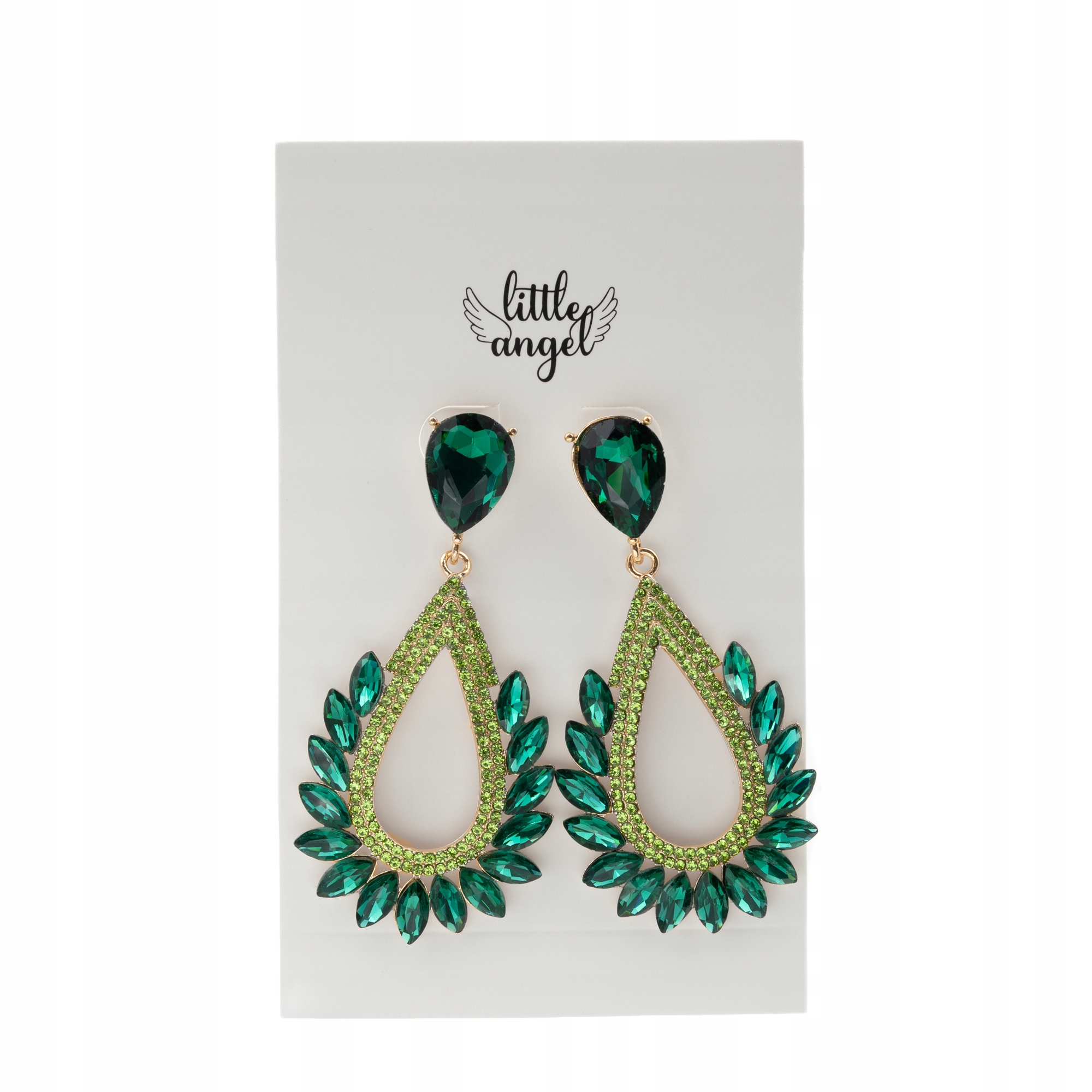 Little Angel KOLCZYKI wieczorowe z Zielonymi kryształkami Łezka Wiszące