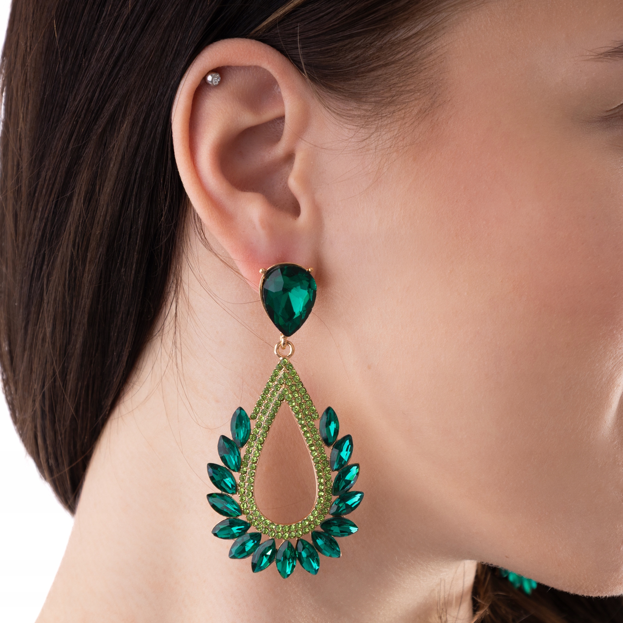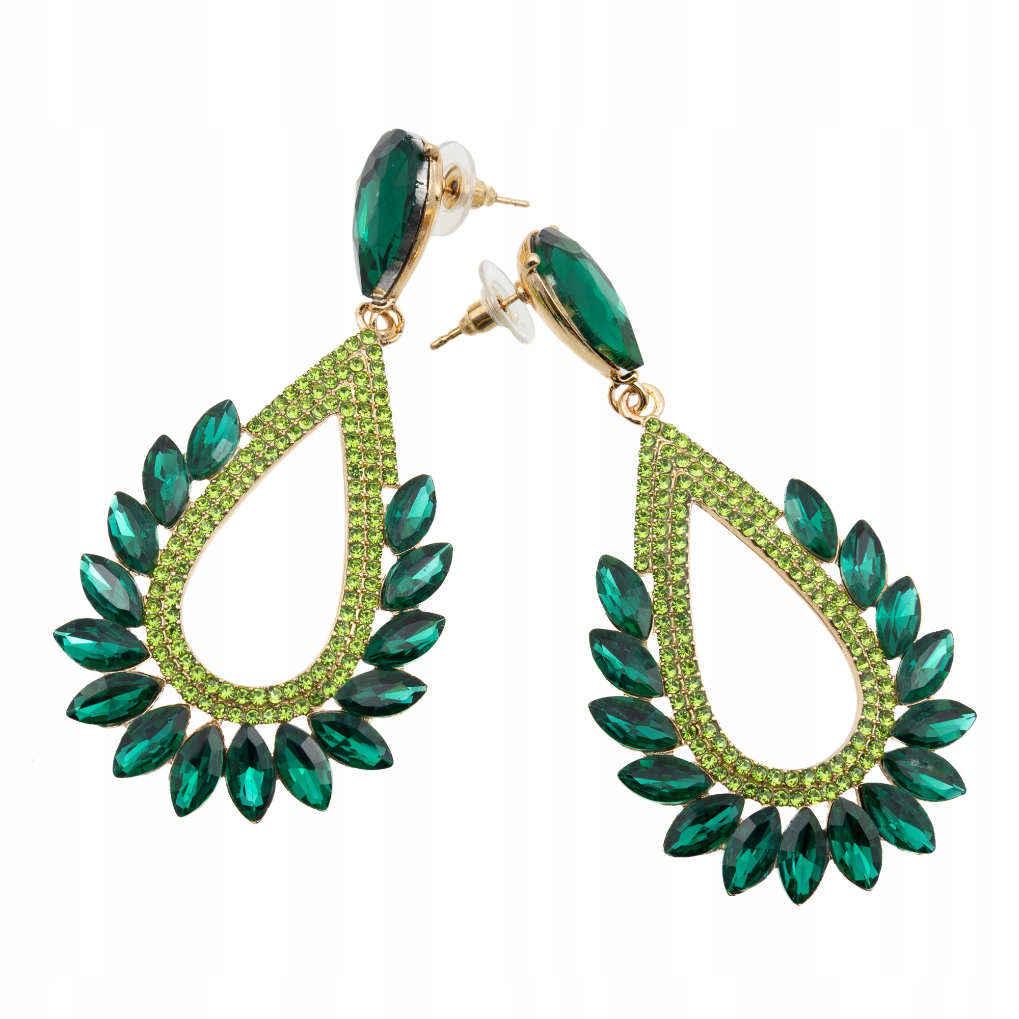 Zielone kolczyki wieczorowe z kryształkami – łezki – glamour – Little Angel