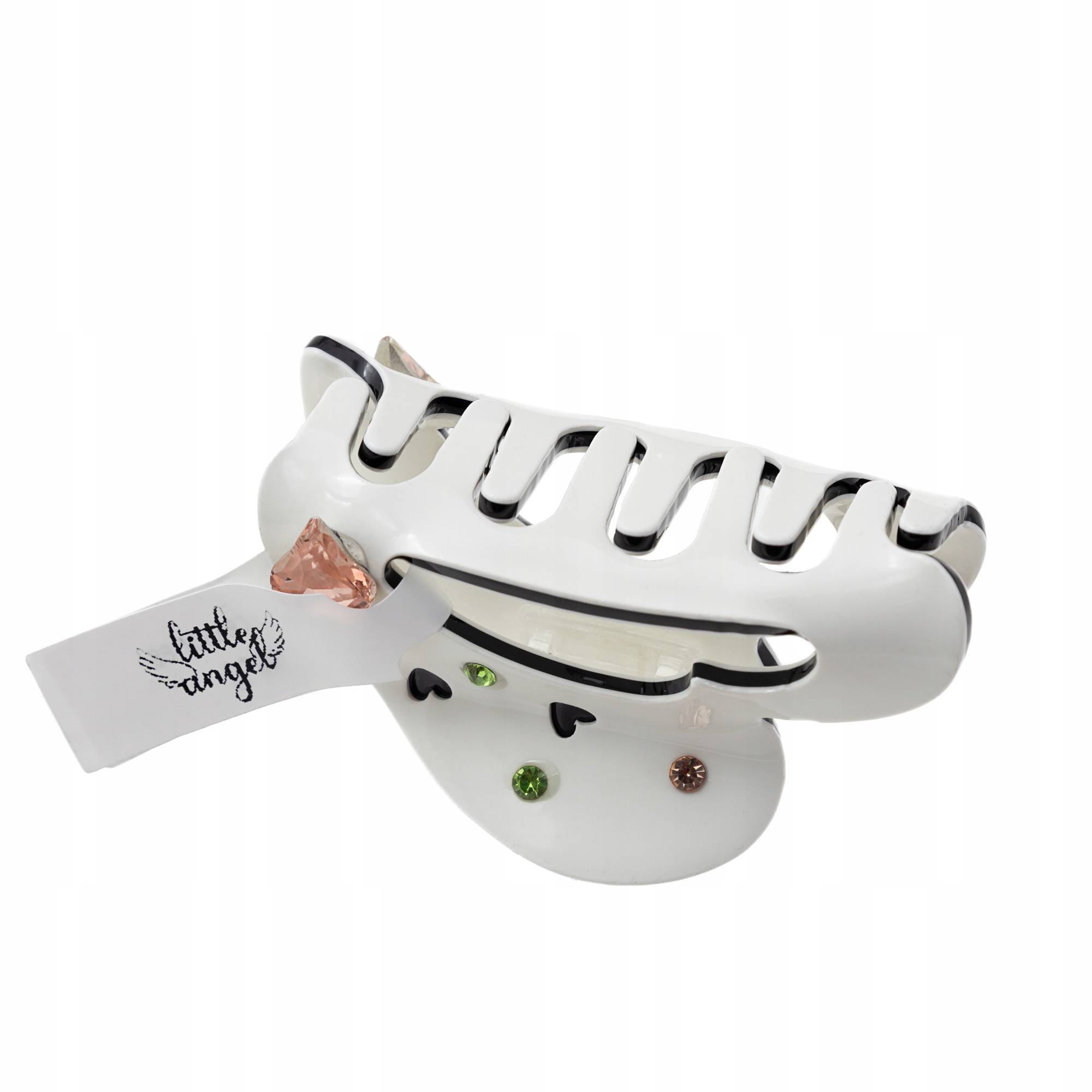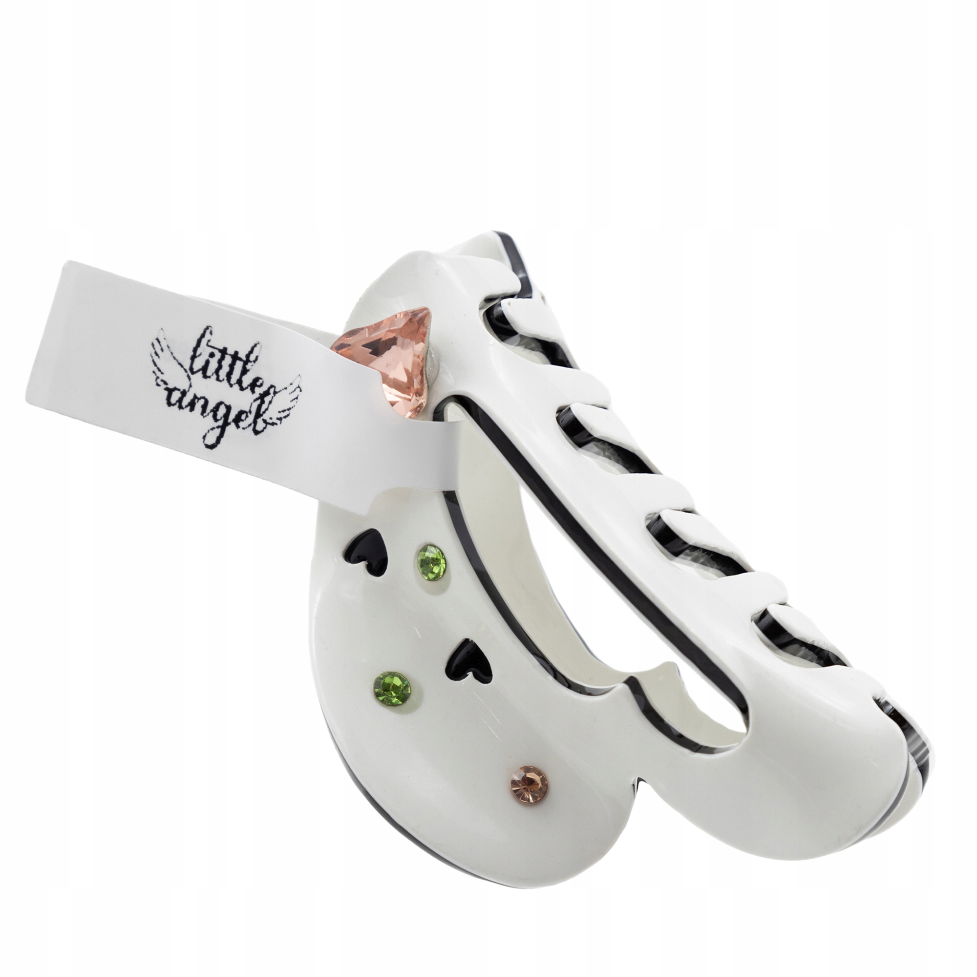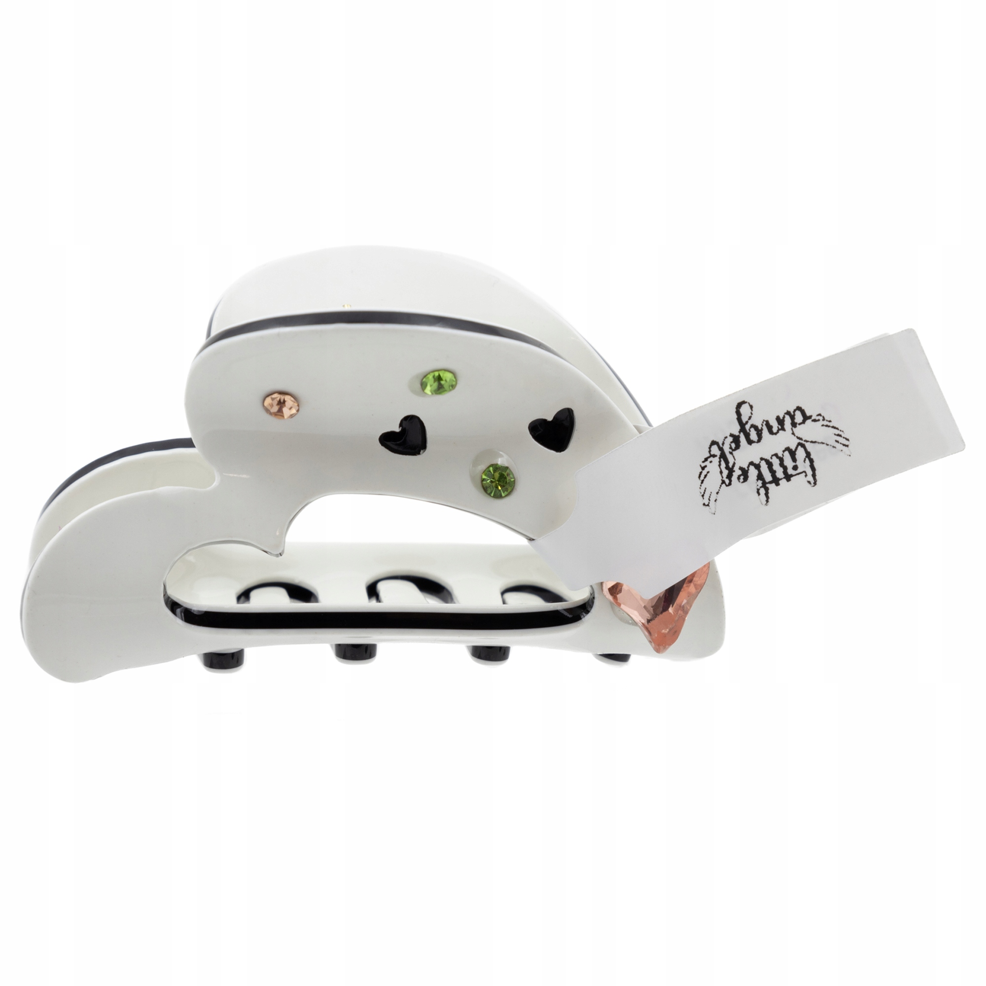 ✔ Wyjątkowy design – biała spinka z subtelnymi zdobieniami w postaci kryształków i serduszek.